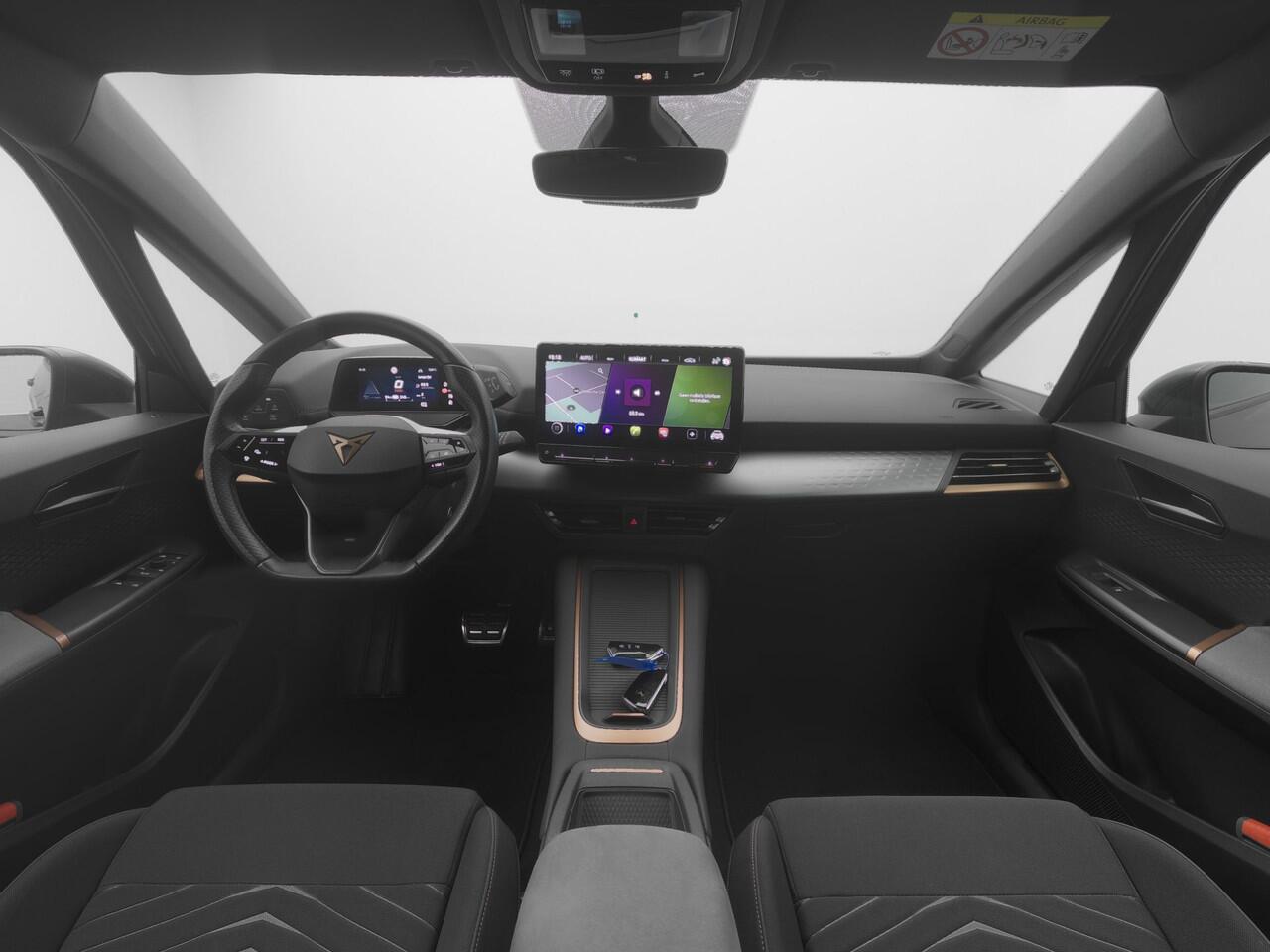 Ervaar de wonderen van de digitale mobiliteitswereld waarbij alles wat u wenst op het digitale dashboard verschijnt. Bij het inparkeren hoeft u het laatste stukje niet te gokken: de achteruitrijcamera kijkt voor u uit. Adaptive cruise control is een comfortabele en veilige optie. Het systeem reguleert de snelheid en houdt automatisch afstand tot uw voorligger. Onderweg kunt u veilig genieten van het audio-installatiesysteem met DAB-radio en het full map navigatiesysteem. Want in deze CUPRA bedient u ze vanaf het stuurwiel of met uw stem. Geen onnodige spaghetti van oplaadsnoertjes voor de smartphone: deze CUPRA Born heeft een draadloze oplaadmogelijkheid voor telefoons. Ook automatische airconditioning