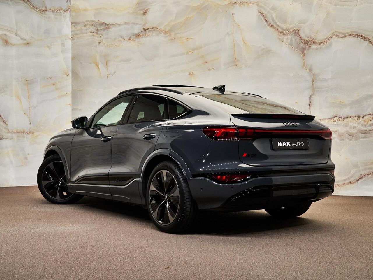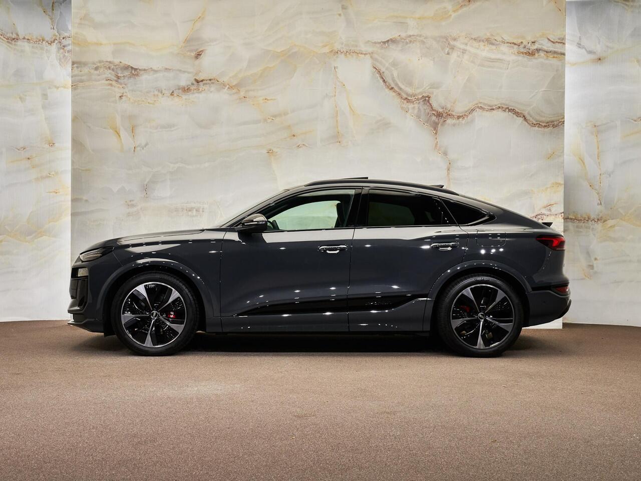 Dit betreft een zeer luxe en krachtig uitgevoerde Audi SQ6 Sportback e-tron Quattro (490 pk - overboostvermogen 517 pk). Kleur exterieur: Magneetgrijs (G5G5) en interieur: