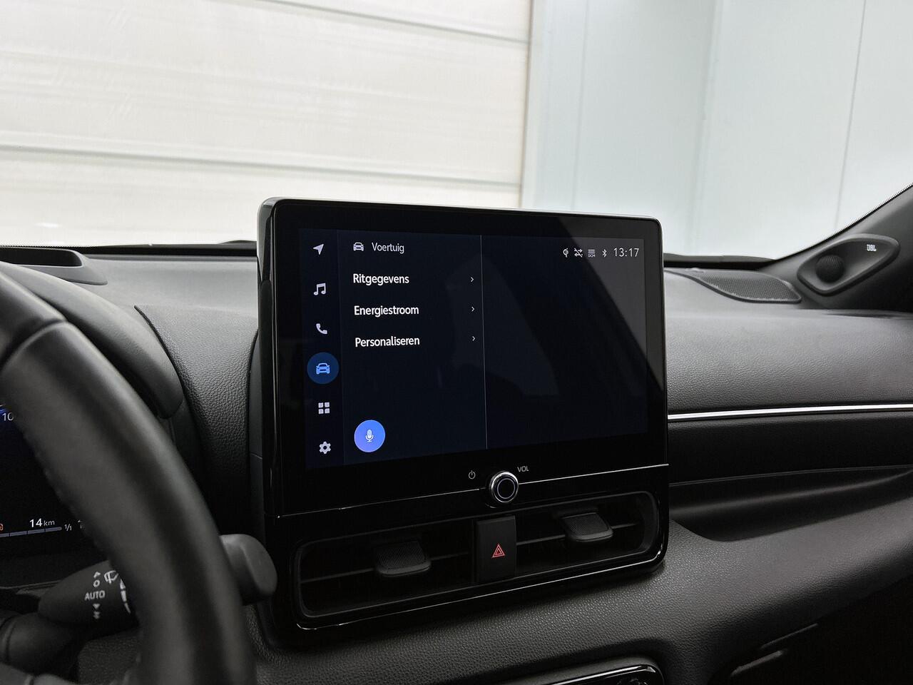 met de achteruitrijcamera. Met adaptive cruise control houdt de auto zelfstandig afstand tot jouw voorligger. Een veiligheidsverhogende optie waarmee je comfortabel onderweg bent. Connected Services zorgen ervoor dat de belangrijkste functies en data van de auto altijd en overal te checken zijn. Gewoon via de app op de smartphone. In deze Yaris vind jij schakelaars op het stuur om het full map navigatiesysteem te bedienen en het audio-installatiesysteem met DAB-ontvangst. Het spreekt voor zich dat een auto als deze ook van electronic climate control is voorzien. Je bent in deze Toyota ook voorzien van regensensor