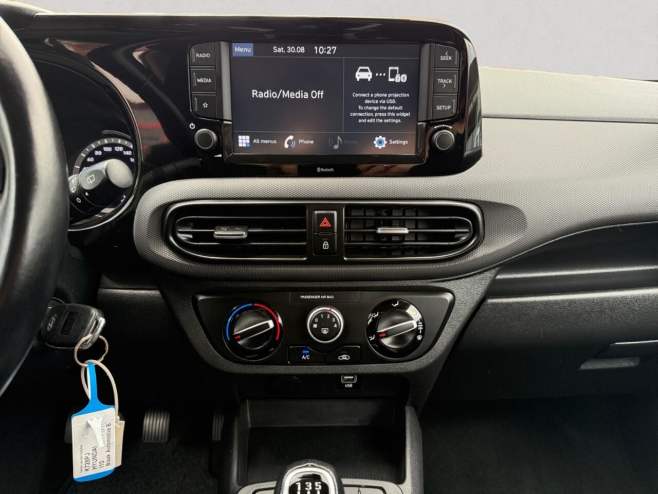 dus vriendelijk voor de inzittenden én de benzinetank. Deze auto heeft airconditioning aan boord. Deze Hyundai is voorzien van lederen stuur