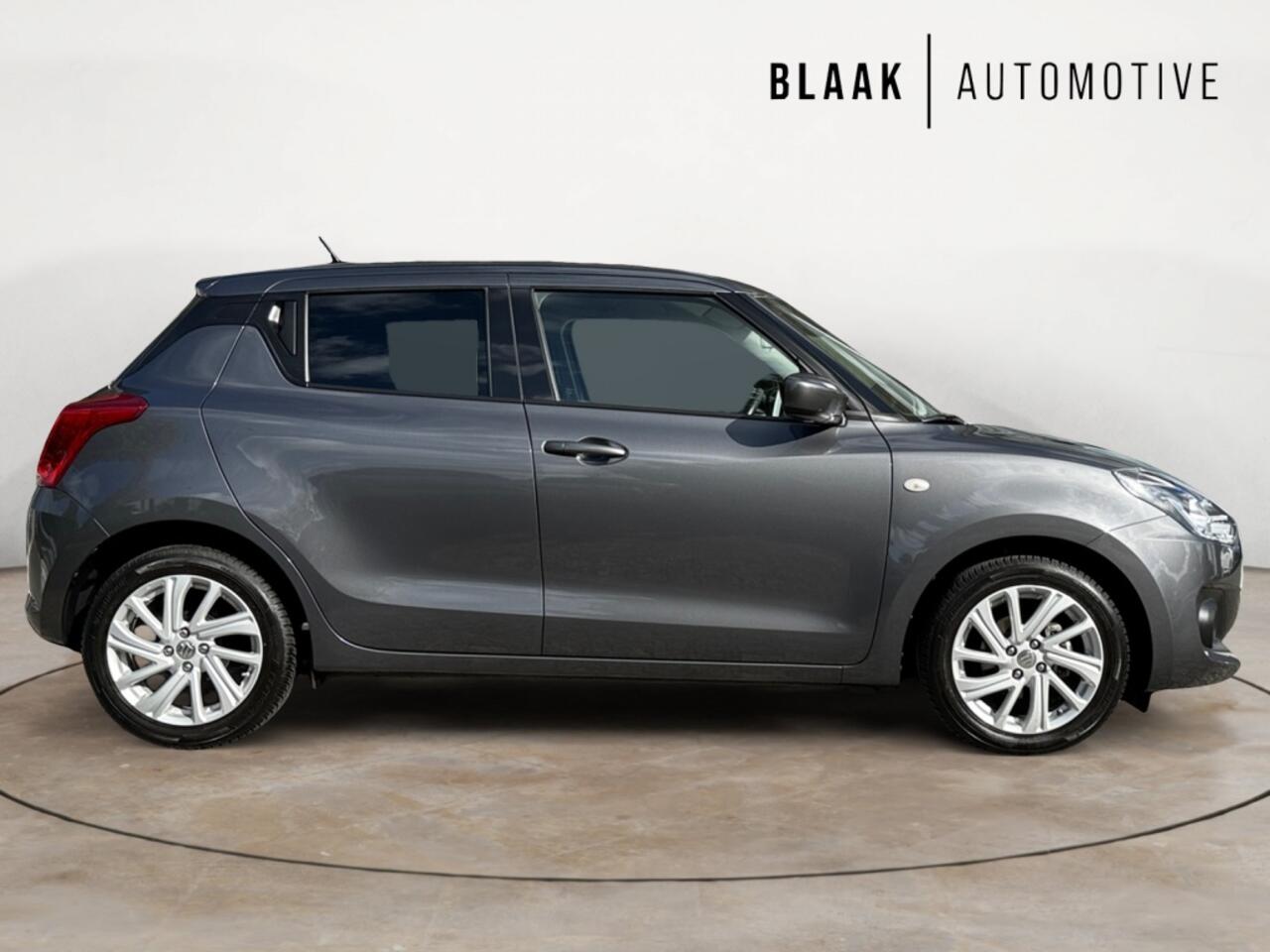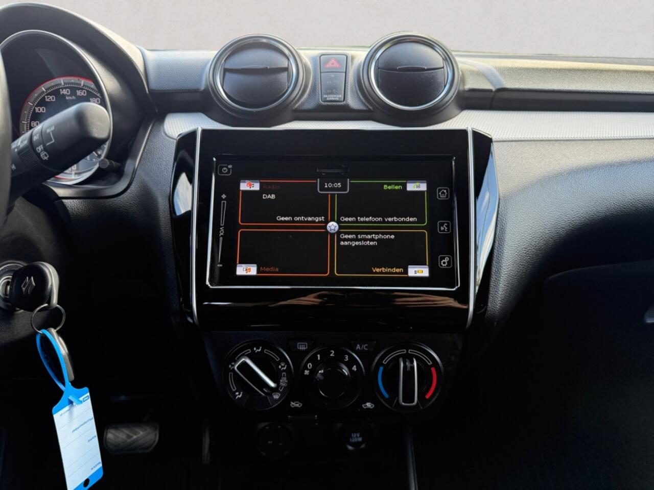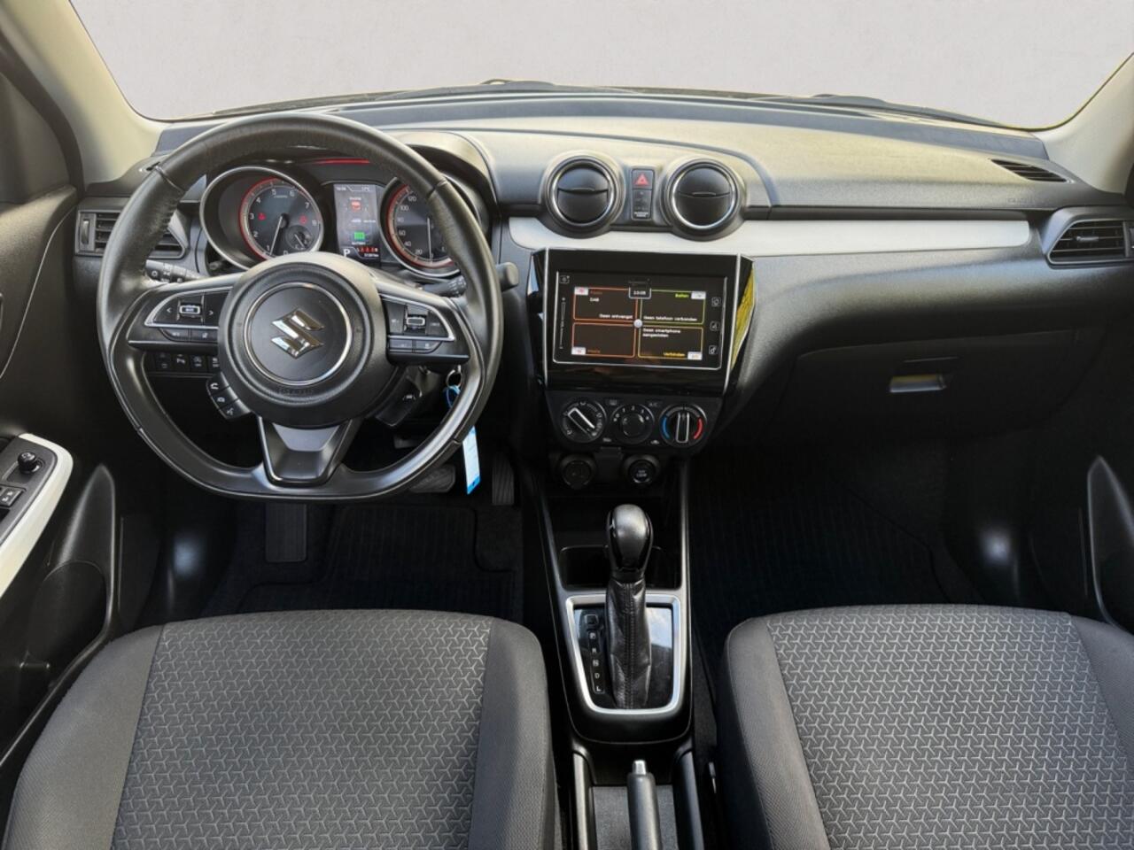 in beeld en geluid. Met adaptive cruise control houdt de auto zelfstandig afstand tot uw voorligger. Een veiligheidsverhogende optie waarmee u comfortabel onderweg bent. U bedient het audiosysteem met dab-radio via knoppen op het stuur. Zo kunt u steeds uw aandacht gericht houden op de weg. Aan boord van deze Suzuki Swift is een achteropkomend verkeer waarschuwing voor extra veiligheid. U vindt in deze auto ook airconditioning. Deze Suzuki is voorzien van lederen stuur