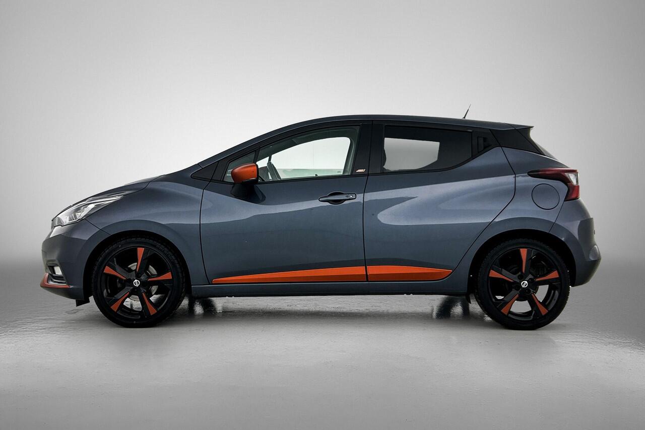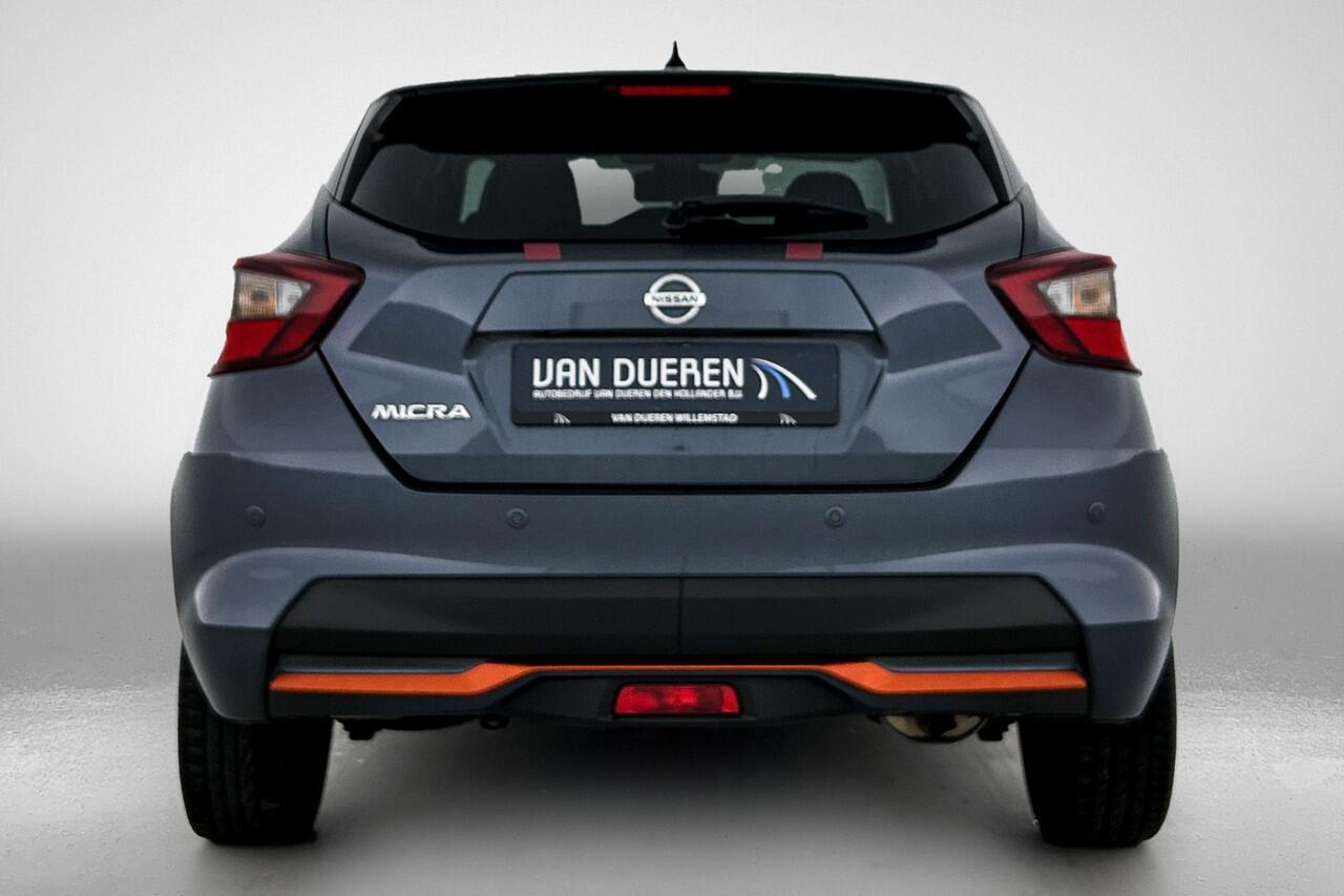 beschikt hij over diverse veiligheidssystemen. Verkeersborddetectie herkent tijdelijke en permanente verkeersborden langs en boven de weg. Deze Nissan Micra is ook behulpzaam als het gaat om een rechte koers. Het Lane-keeping systeem signaleert en corrigeert als u onbedoeld de rijstrooklijnen dreigt te overschrijden. In een gevaarlijke situatie is een zo kort mogelijke remweg van levensbelang. De Brake Assist zorgt dat u dan maximaal in de ankers gaat. De auto is ook uitgerust met dodehoekdetectie