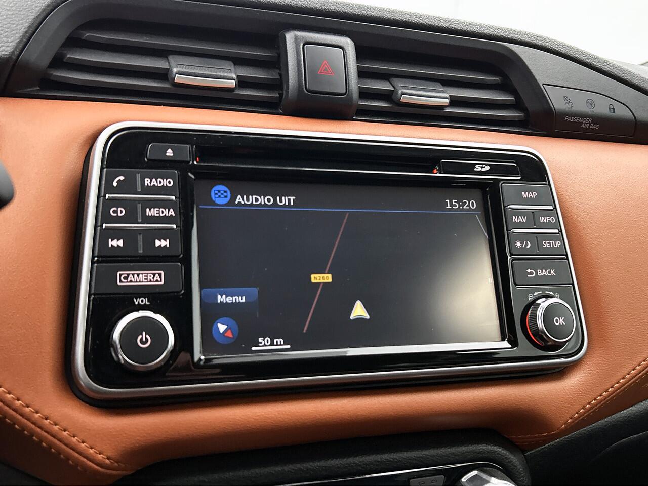 de snelste weg... elke weg is te vinden met het full map navigatiesysteem. Ook over uw schouder ziet u onderweg niet alles wat er aan de achterzijde gebeurt. Daarom heeft deze Nissan Micra een achteropkomend verkeer waarschuwing. Dankzij automatische airconditioning is het interieur behaaglijk warm of verfrissend koel. Wat u ook in deze auto kunt vinden zijn DAB ontvangst