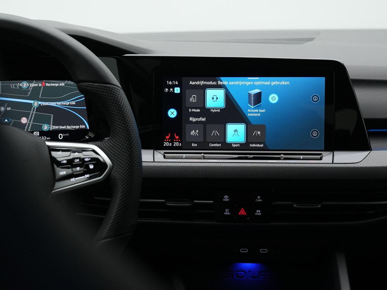 Achter het stuur merk je direct dat deze Golf gemaakt is voor dagelijks gemak én ontspannen kilometers. De sportstoelen bieden fijne steun
