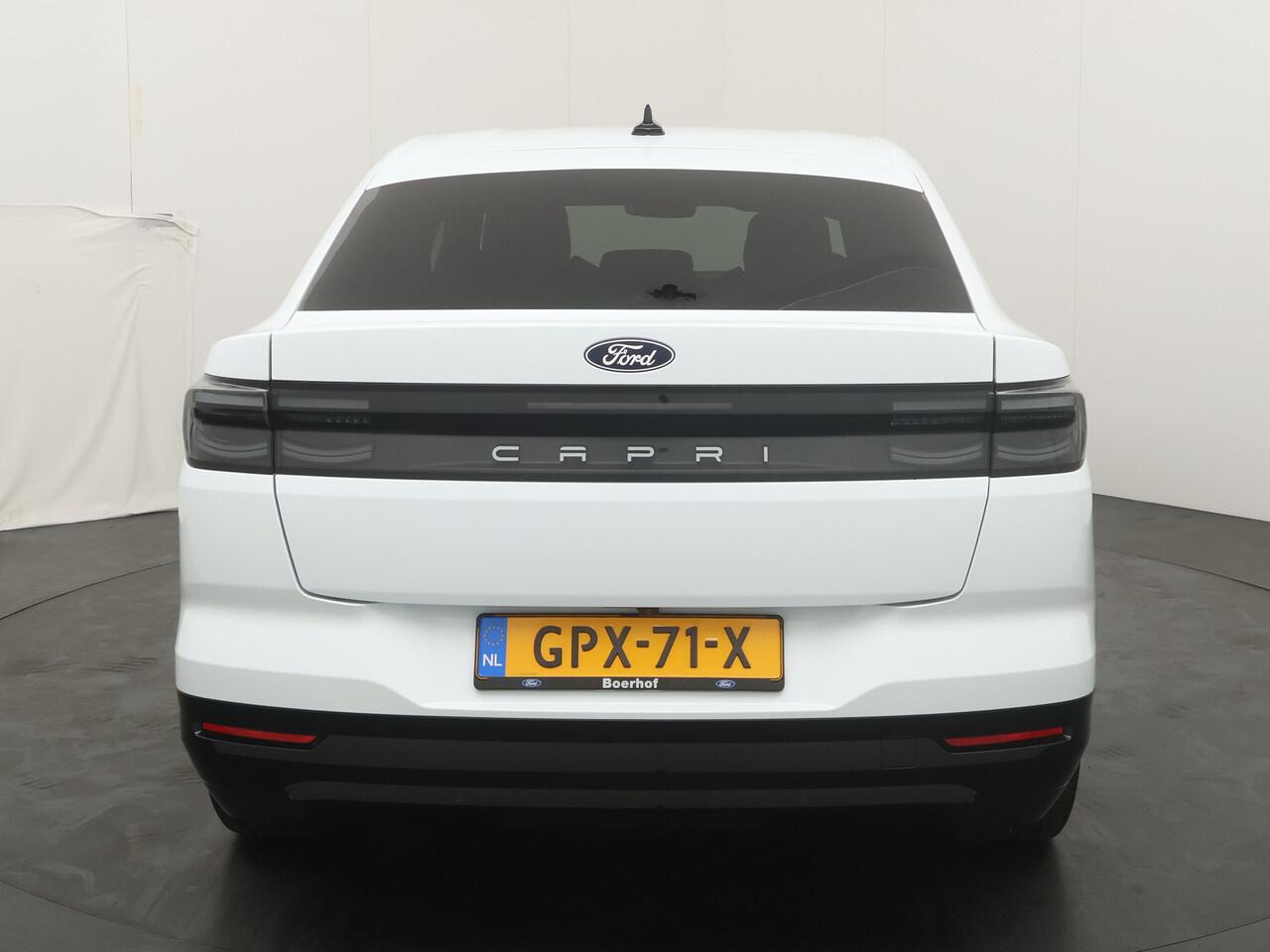 Net als de klassieke Capri worden standaard de achterwielen aangedreven. Geen overbodige luxe met 286 pk! Hierdoor is er rust bij het sturen omdat de wielen geen aandrijfkrachten te verwerken hebben. Bijkomend voordeel is dat de wielen zeer grote hoeken kunnen maken. De draaicirkel is hierdoor bijzonder klein. Het betekent dat u deze ruime auto toch heel gemakkelijk kunt parkeren.