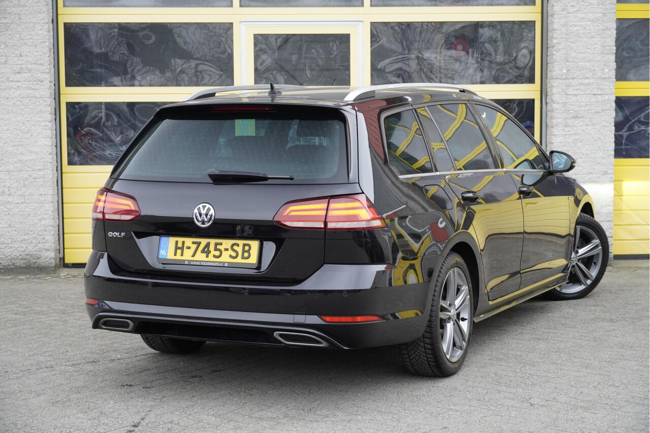Volkswagen Golf Variant Automaat met de zeer luxe aanwezige opties als Lichtmetalen velgen | Led dagrijverlichting | Led koplampen | Led achterlichten | Parkeersensoren | Sideskirts | App-Connect | Dashboard verlichting | Navigatiesysteem | Virtual cockpit | Climate control | Cruise control | Sportstoelen | Zwarte hemel | R-Line stuurwiel | Extra getint glas.