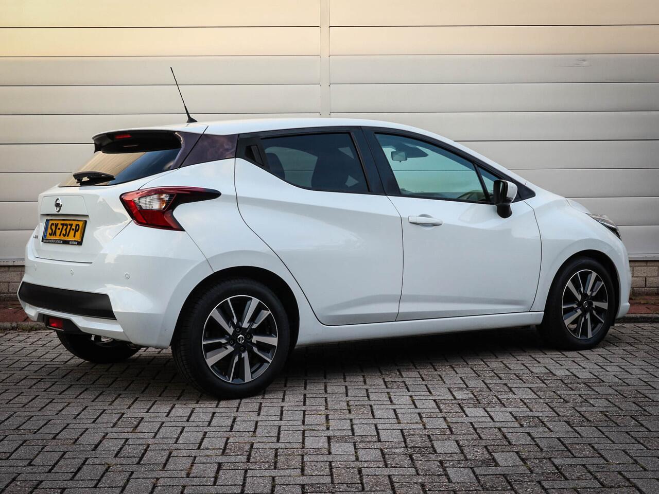 is deze Nissan Micra voorzien van een achteropkomend verkeer waarschuwing die registreert wanneer de afstand tot uw achterligger te krap is. Het spreekt voor zich dat een auto als deze ook van automatische airconditioning is voorzien. De aanwezige parkeersensoren zijn de ultieme hulp om te laten weten hoeveel ruimte er nog is om te manoeuvreren. Wat u ook in deze auto kunt vinden zijn full map navigatiesysteem