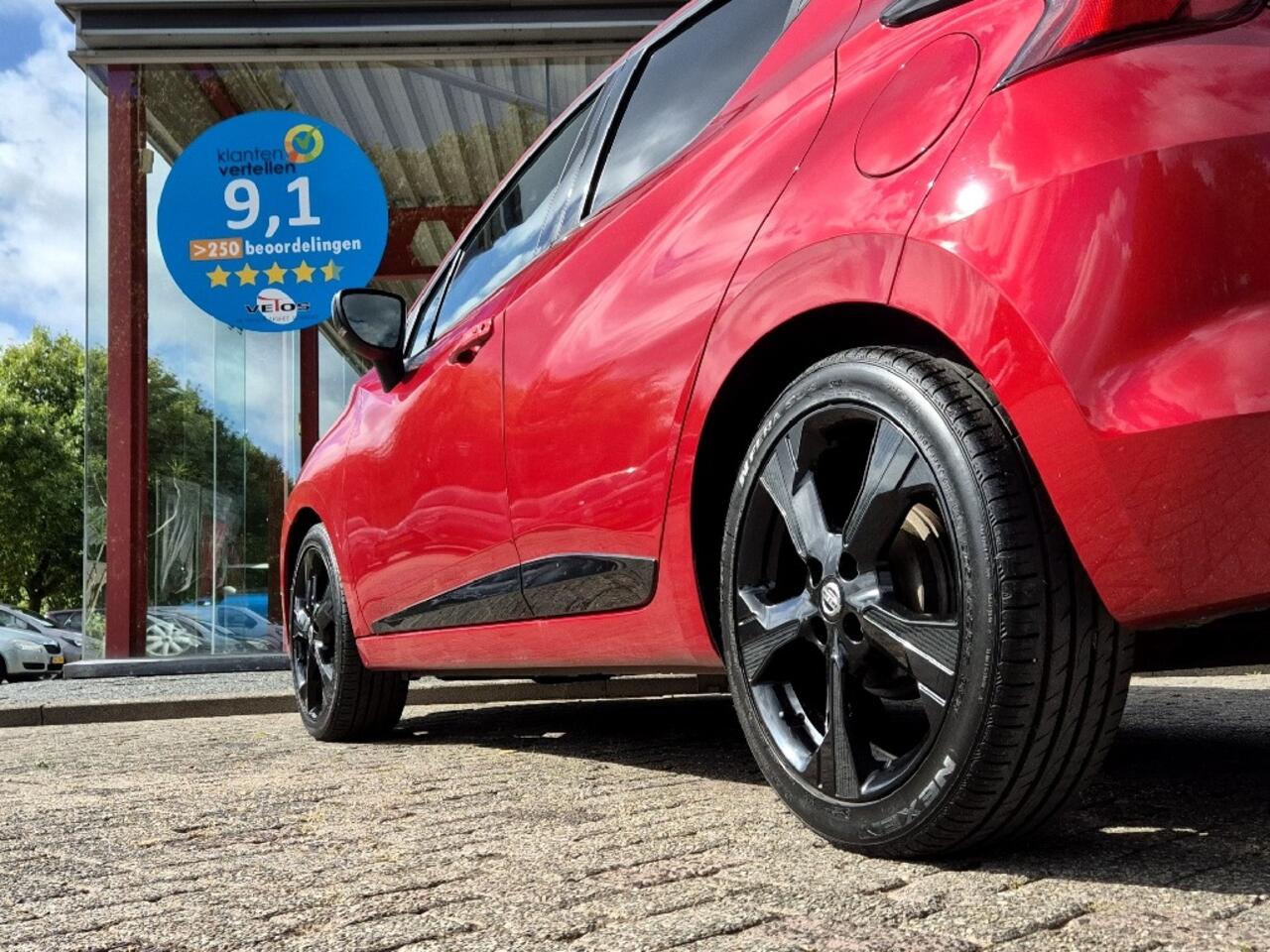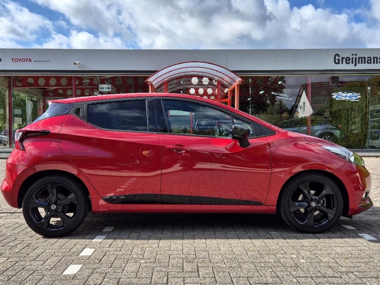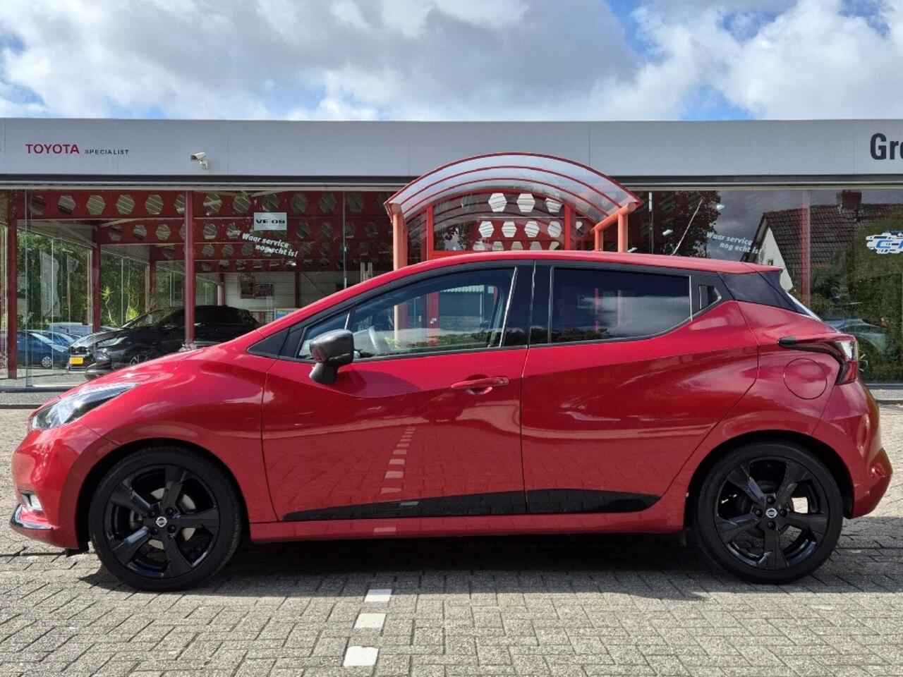 Ben je op zoek naar een sportieve auto met een opvallend design? Dan is deze Nissan Micra precies wat je zoekt! Uitgevoerd in een schitterende rood metalliclak met stoere zwarte wielen