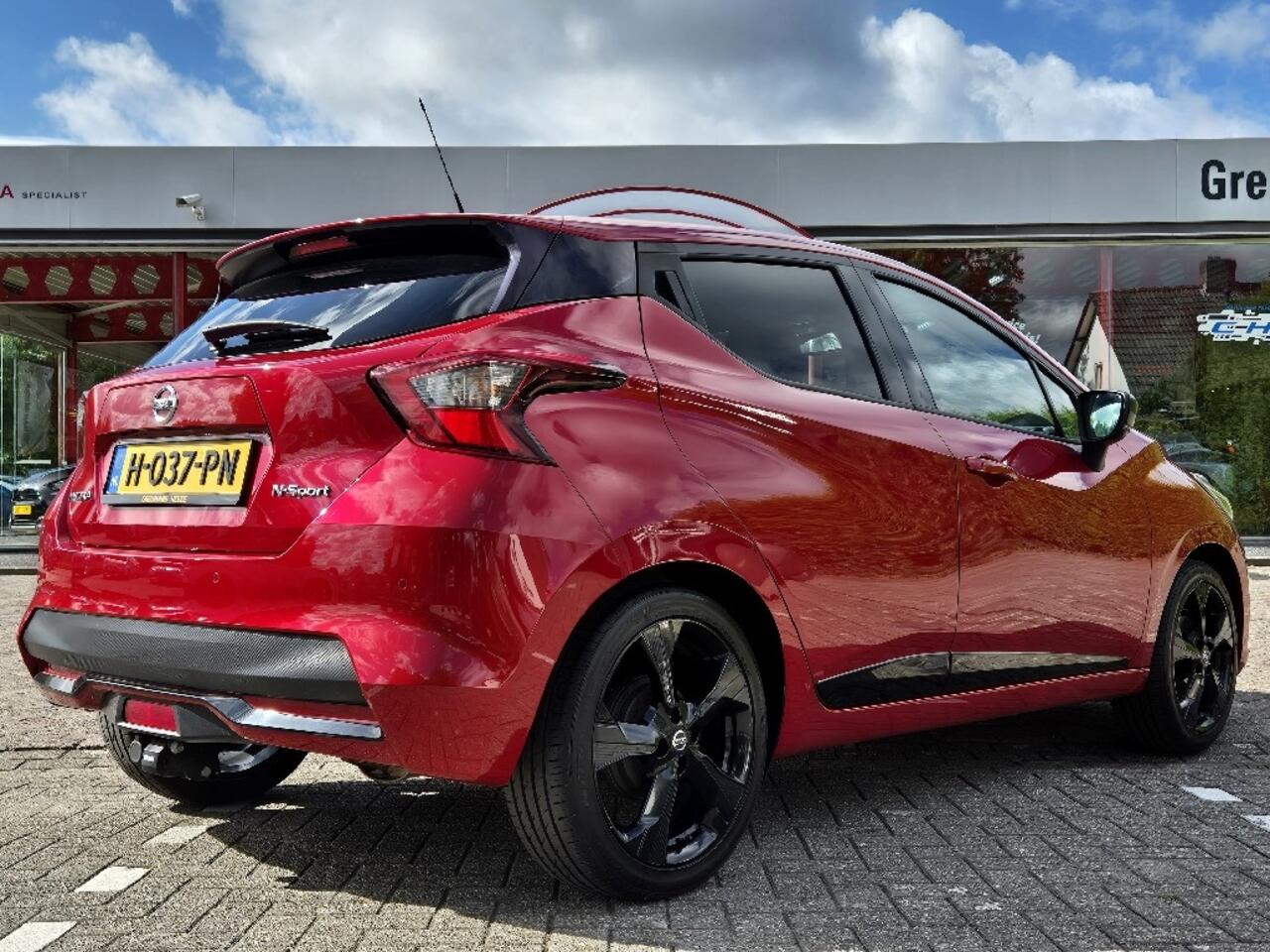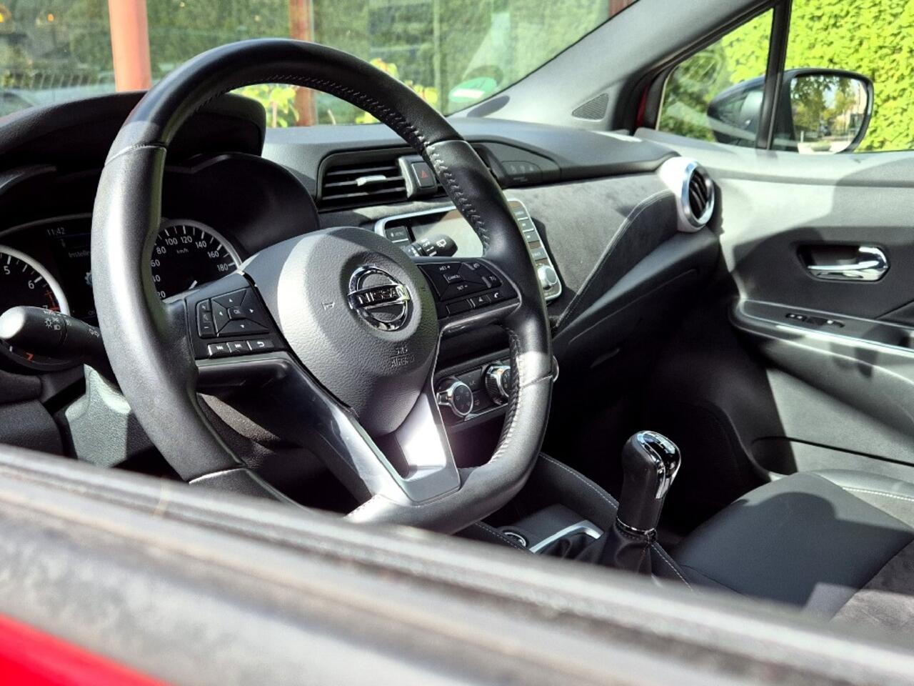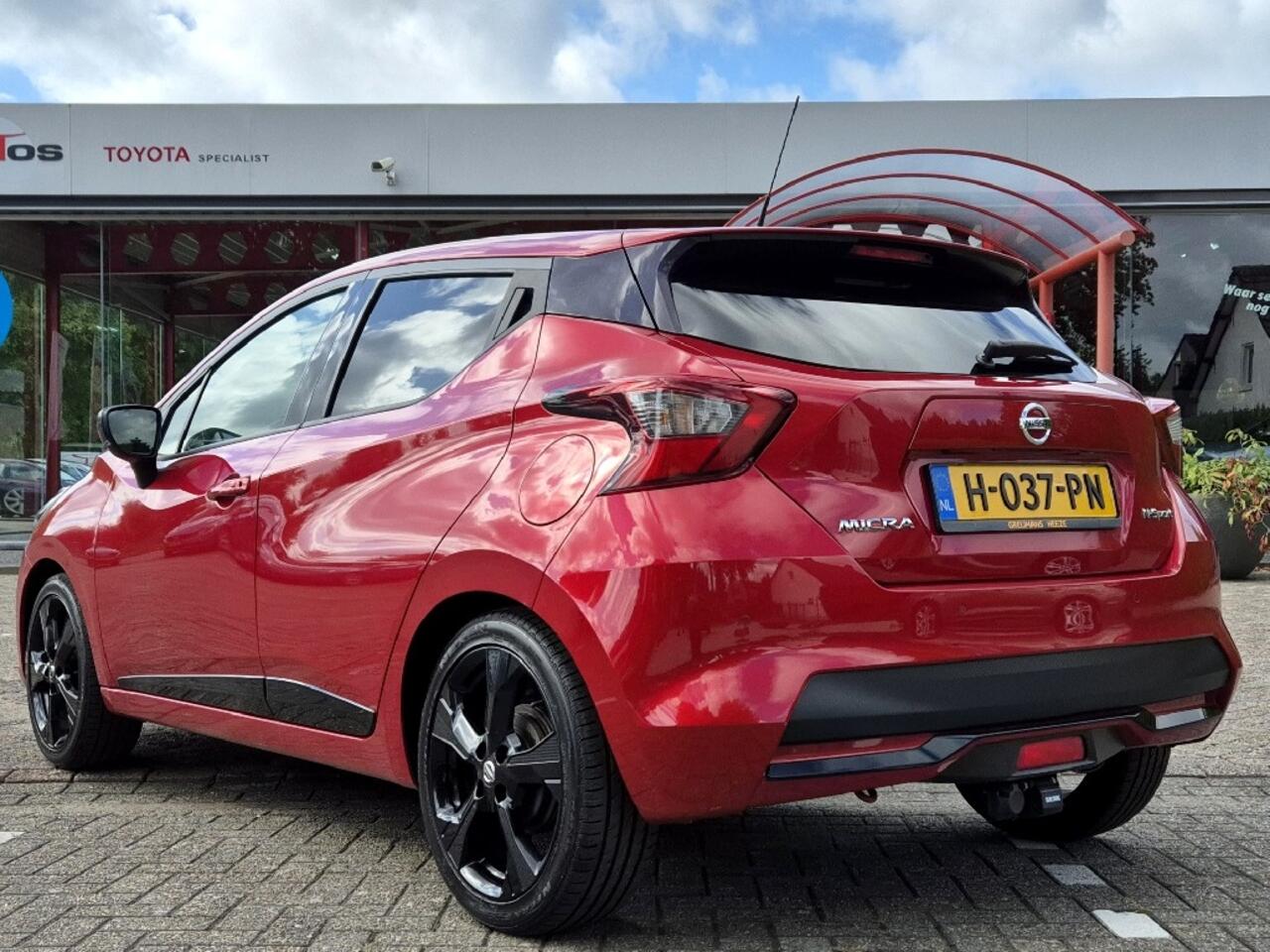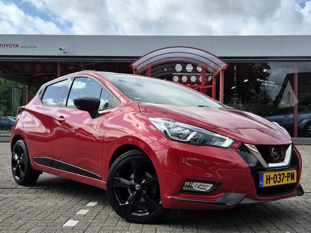 Ben je op zoek naar een sportieve auto met een opvallend design? Dan is deze Nissan Micra precies wat je zoekt! Uitgevoerd in een schitterende rood metalliclak met stoere zwarte wielen