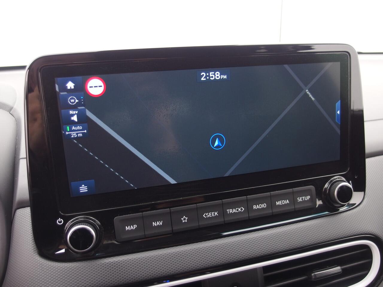 De nieuwste veiligheidssystemen komen in deze Hyundai Kona samen. Deze Hyundai Kona is ook behulpzaam als het gaat om een rechte koers. Het Lane-keeping systeem signaleert en corrigeert als u onbedoeld de rijstrooklijnen dreigt te overschrijden. De forward collision warning geeft een botswaarschuwing als een aanrijding dreigt met een voorligger. Het systeem voor vermoeidheidsherkenning neemt het waar als uw concentratie verslapt en geeft u dan een waarschuwing. U bent mede dankzij head-up display