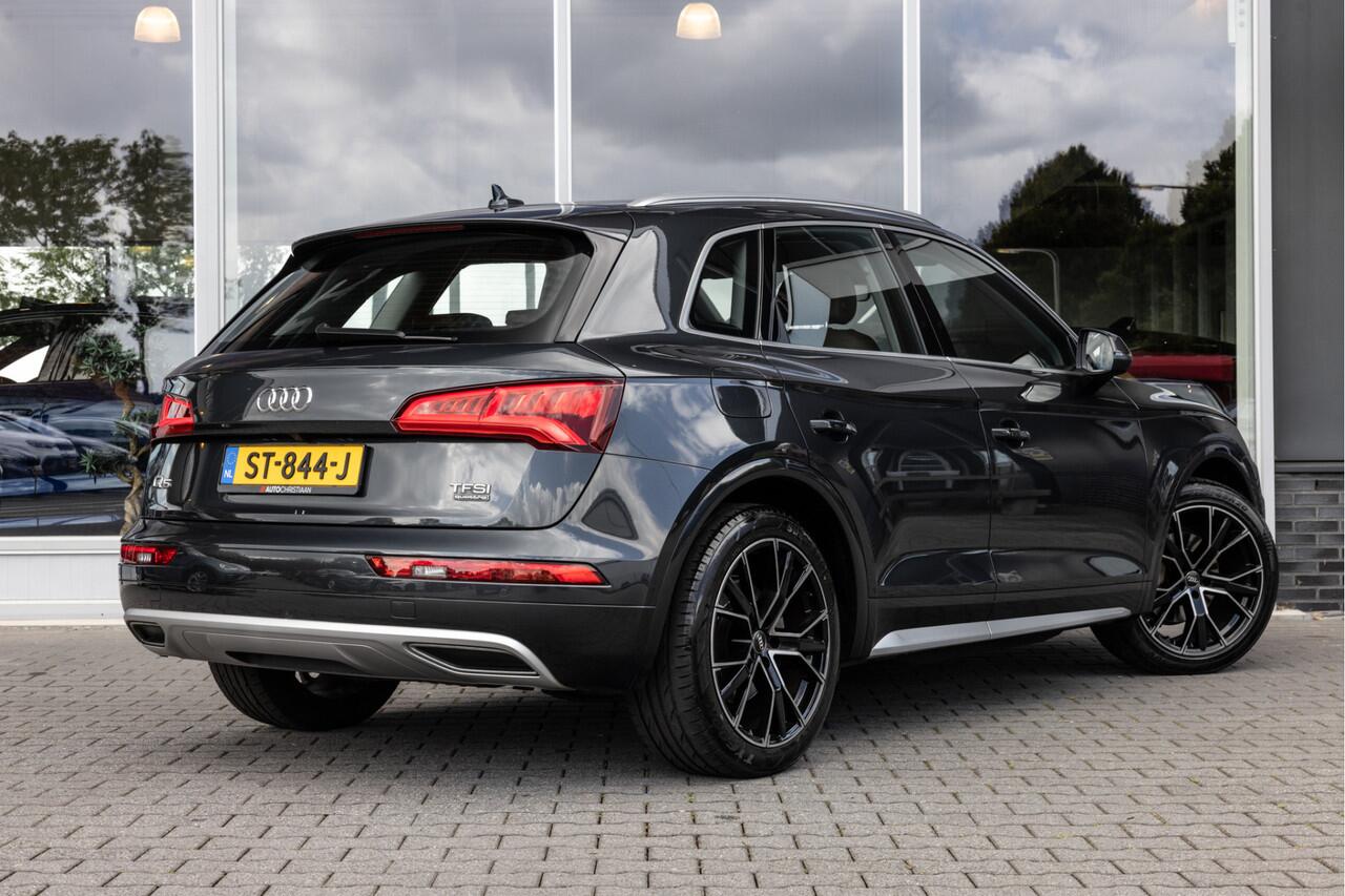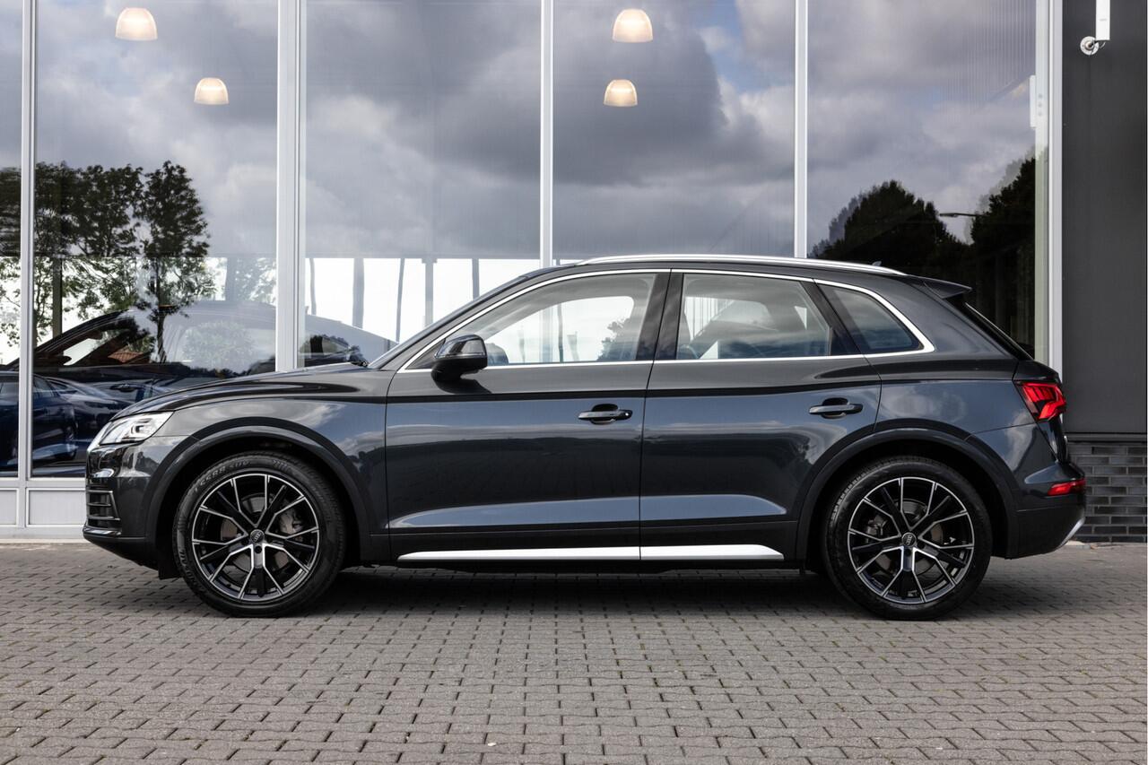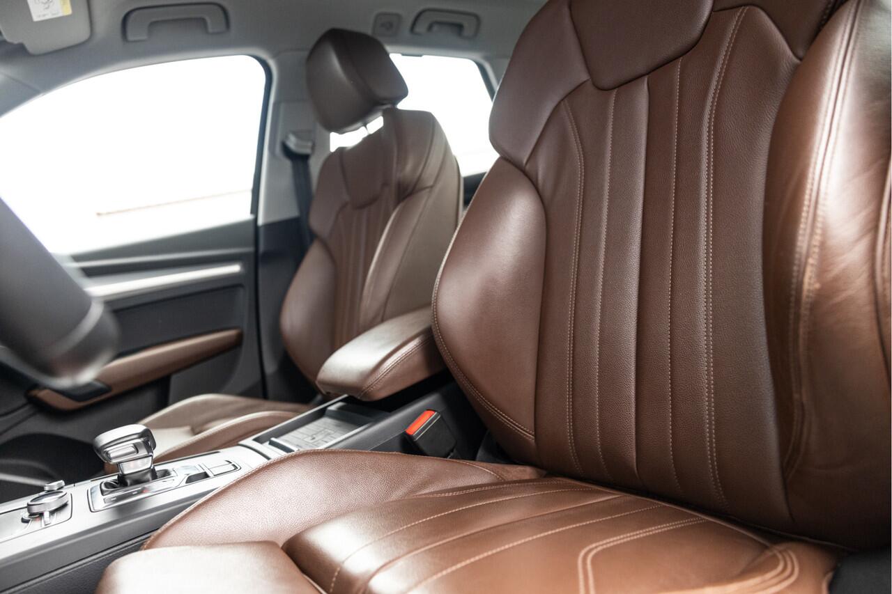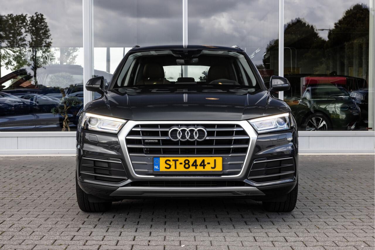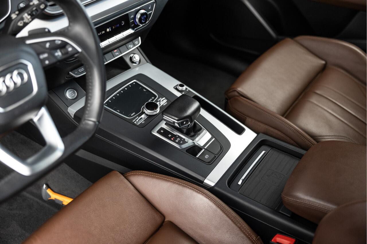 deze Audi Q5. Het is een auto uit 2018. De aandrijving van deze SUV komt voor rekening van een viercilinder benzinemotor en een automatische transmissie. Kijk