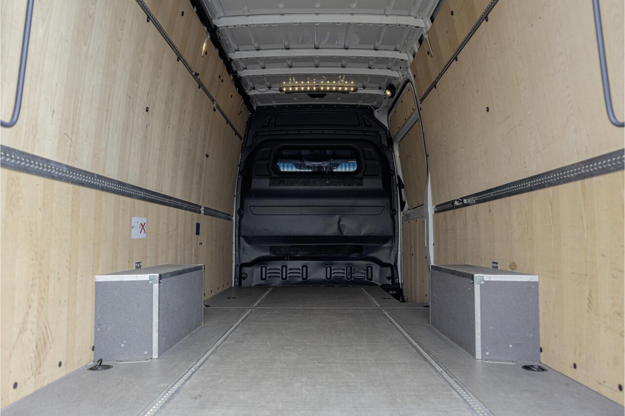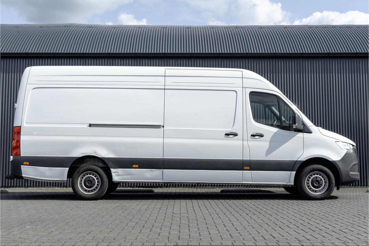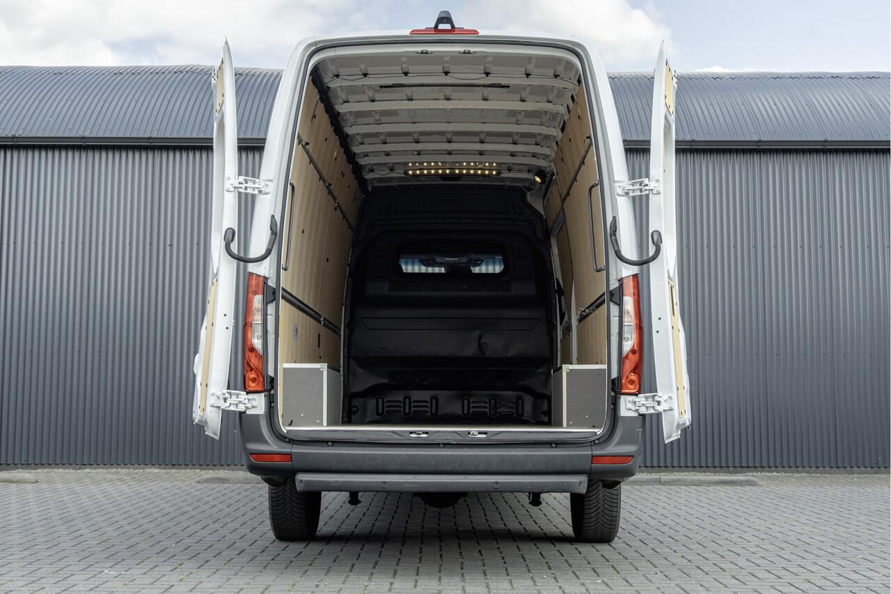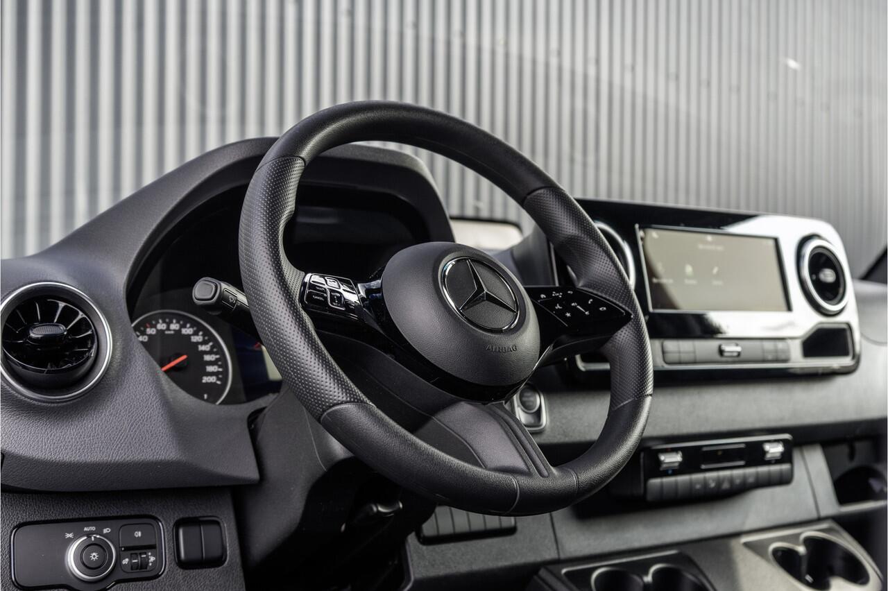 Deze extra verlengde en verhoogde Mercedes-Benz Sprinter Automaat heeft slechts 46.333 km gelopen. Het gaat hier om het nieuwe model vanaf 2024. Dit kan men o.a. zien aan het dashboard en het stuurwiel. Uitgerust met automaat met schakelflippers