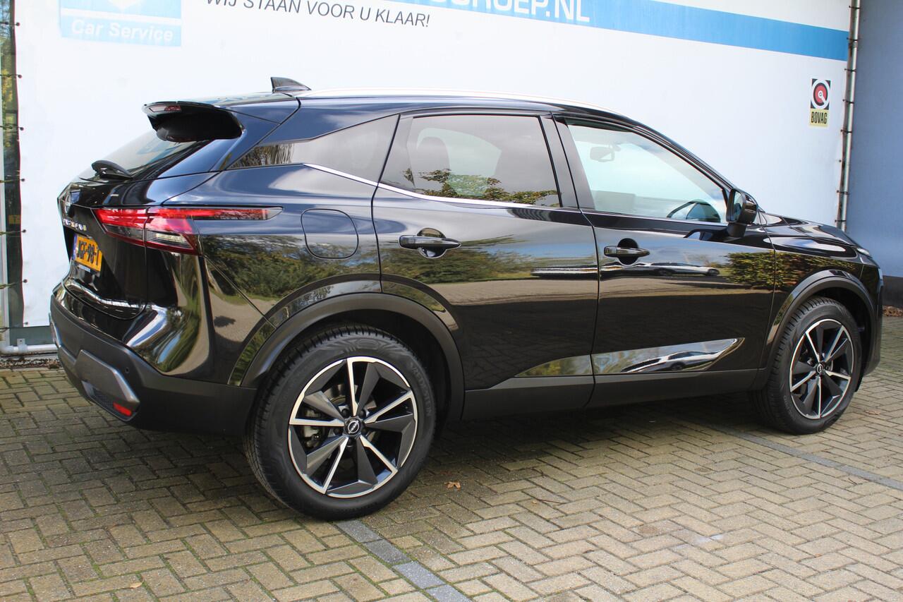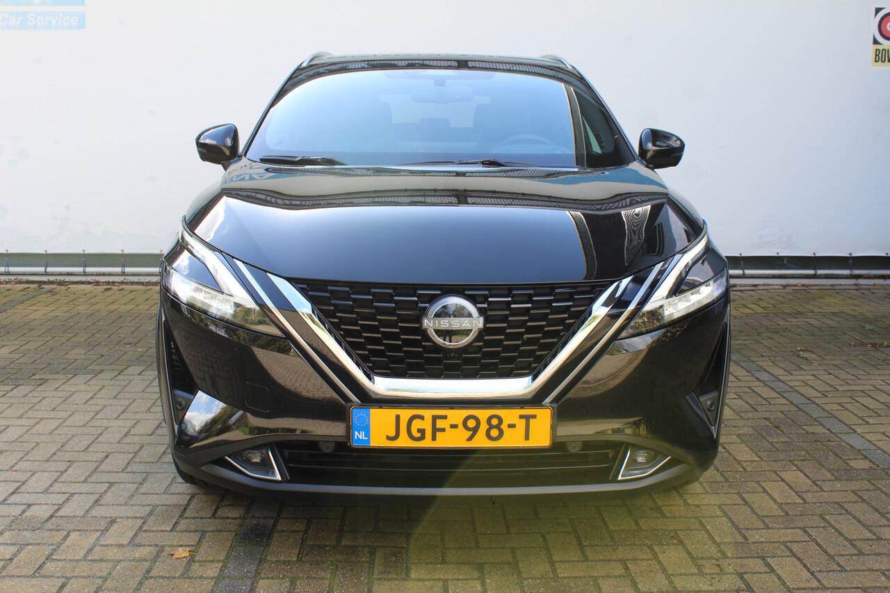 en hij rijdt dynamisch en comfortabel. In deze SUV vindt u een driecilinder motor en een automatische transmissie. Tijdens gure dagen is het prettig zitten in de verwarmbare voorstoelen. De elektrisch bedienbare achterklep opent met een druk op de knop. Met het grote glazen panoramadak voelt het alsof u in een cabrio zit. Opvallend is de geavanceerde matrix LED-verlichting met daglichtkwaliteit. De koplampen dimmen automatisch het deel van de lichtstraal waar voor- of tegenliggers in rijden. De overige segmenten blijven aan en verlichten de weg maximaal. Verder is de Nissan uitgerust met: 19 inch lichtmetalen velgen