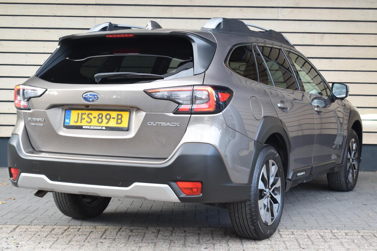 Alle technologie in de Subaru Outback is er op gericht om uw rit veilig en gemakkelijk te laten verlopen. De aandrijving komt voor rekening van een benzinemotor en een automatische transmissie. Het lederen interieur geeft deze auto luxe en klasse. De verwarmbare voorstoelen zijn een weldaad voor rug en schouders. Qua licht en ruimtelijk gevoel zit het helemaal goed met het elektrisch bediende panoramadak. Met een druk op de knop gaat de elektrische achterklep open. Voor en achter: iedereen dezelfde luxe. Vandaar de verwarmde achterbank. Ook is de auto voorzien van: 18 inch lichtmetalen velgen
