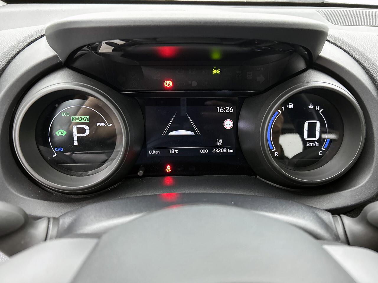door de combinatie van een verbrandingsmotor en een elektromotor. Verder is de Toyota uitgerust met: 16 inch lichtmetalen velgen