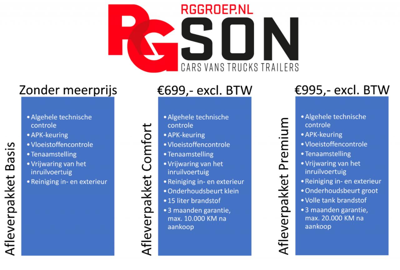RG Son besteedt veel aandacht aan een juiste aflevering van de door u aangeschafte occasion. Daarom worden al onze bedrijfswagens voor gecontroleerd alvorens ze verkocht worden. Wij leveren iedere auto af met een geldige APK