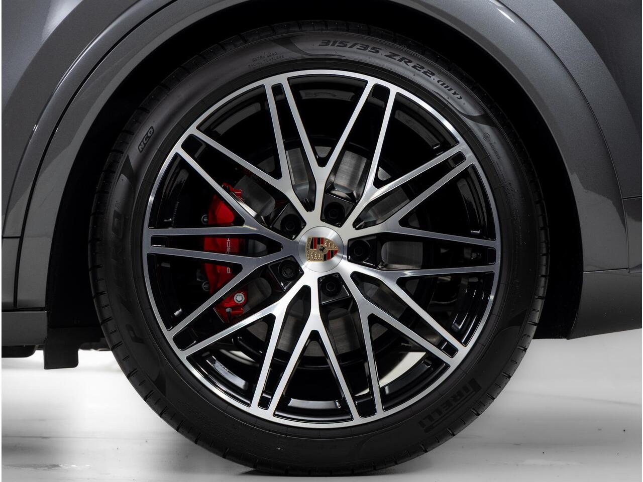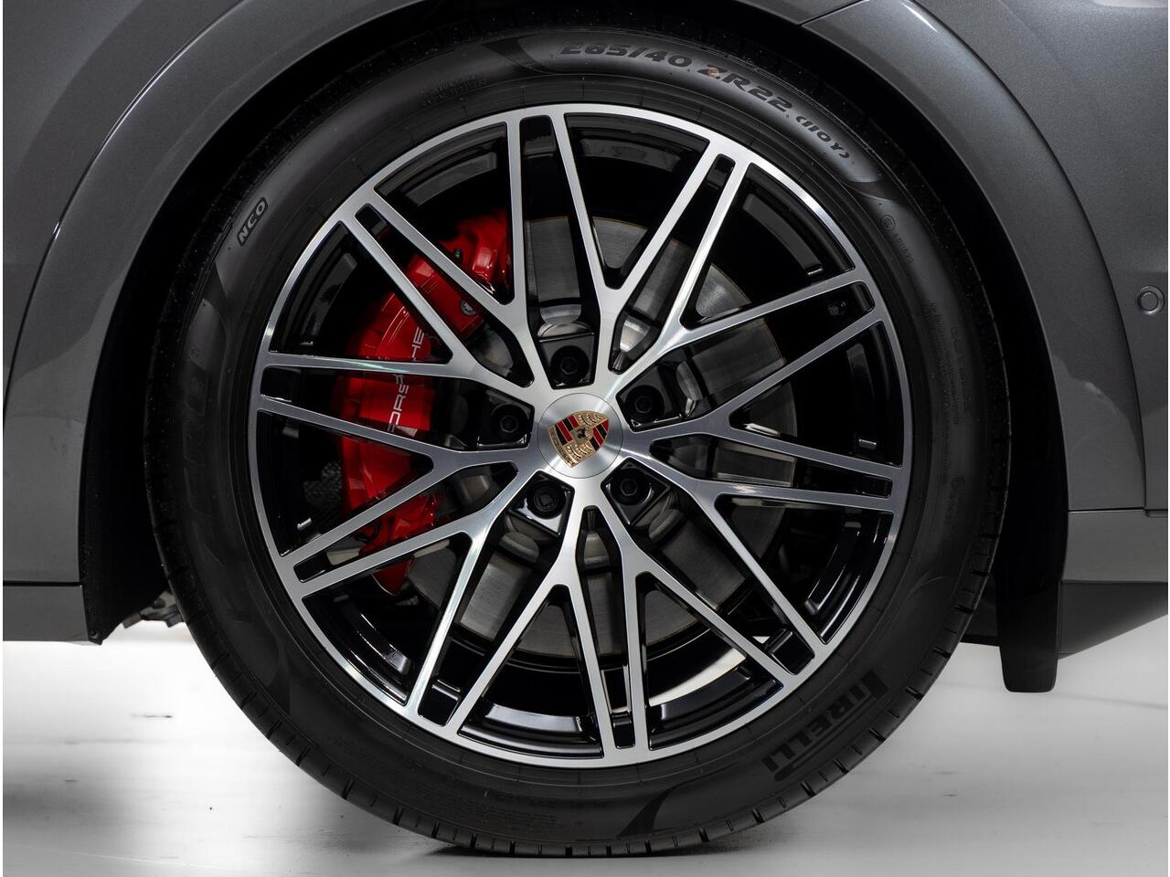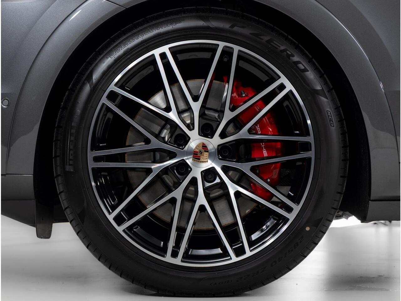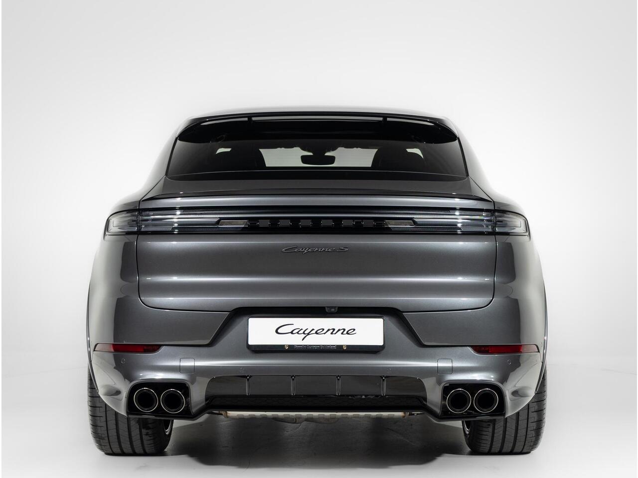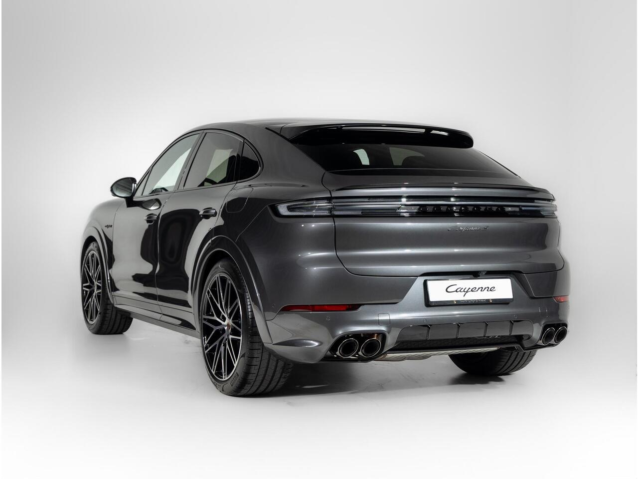 Deze Porsche Cayenne S E-Hybrid Coupé Black Edition in de kleur Kwartsiet Grijs metallic is nog nieuw en ongeregistreerd. De Porsche onderscheidt zich onder andere door unieke opties