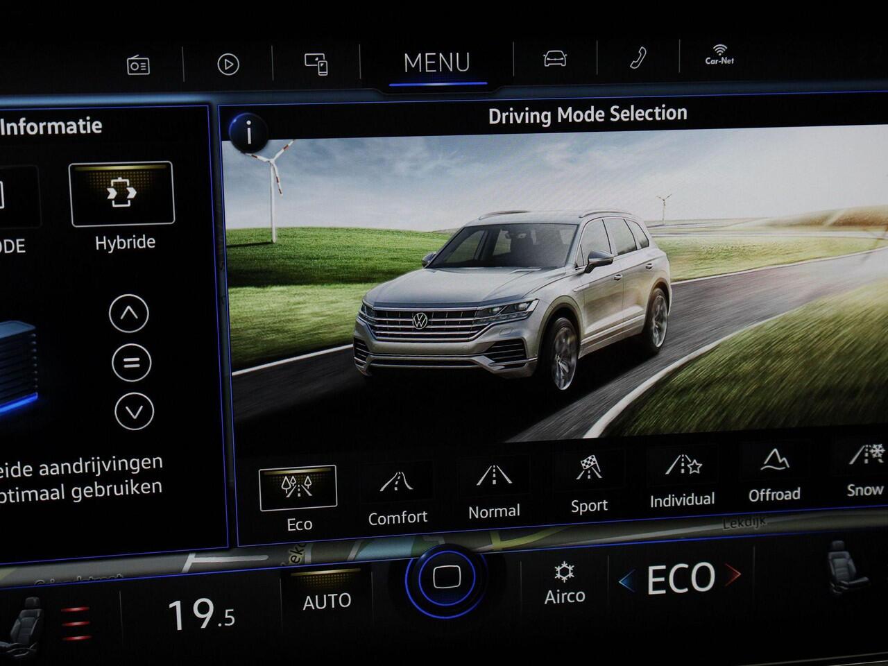 verkeert deze Touareg in uitstekende conditie. De toekomst is hybride: de combi van elektromotor en verbrandingsmotor maakt deze auto extra aantrekkelijk en voordelig in gebruik. Dit is een auto in het wat hogere segment; dat merkt u bijvoorbeeld aan de luchtvering. De auto is voorzien van een mooie en comfortabele lederen bekleding. Deze Volkswagen Touareg heeft verwarmbare voorstoelen