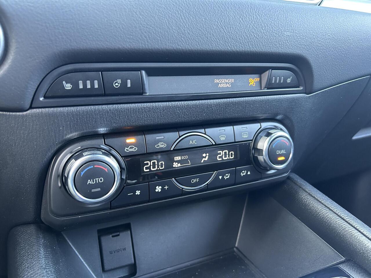 veilig en ontspannen op pad: dat kan dankzij het aanwezige full map navigatiesysteem. Ook over uw schouder ziet u onderweg niet alles wat er aan de achterzijde gebeurt. Daarom heeft deze Mazda CX-5 een achteropkomend verkeer waarschuwing. U bent in deze Mazda ook voorzien van electronic climate control