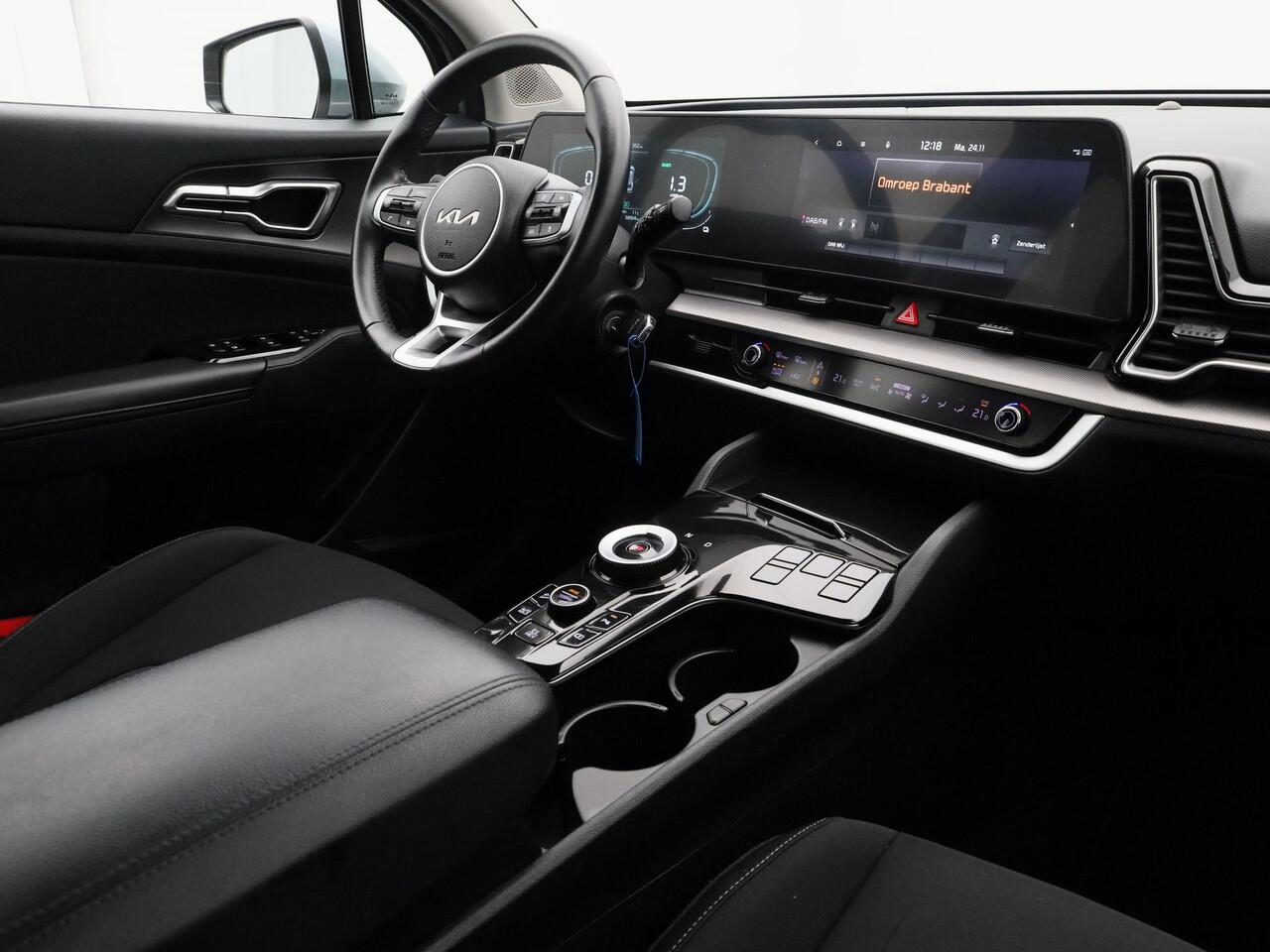 Techniek en design helemaal van nu. Kilometerstand van gisteren. Deze bijna-nieuwe Kia Sportage heeft z'n nestveren afgeschud en is klaar om te vliegen. Deze hybride auto beschikt over een verbrandingsmotor én een elektromotor. Daardoor rijdt de auto zeer comfortabel en is tegelijk zuinig in het verbruik. Bij de rijke uitrusting horen ook 19 inch lichtmetalen velgen