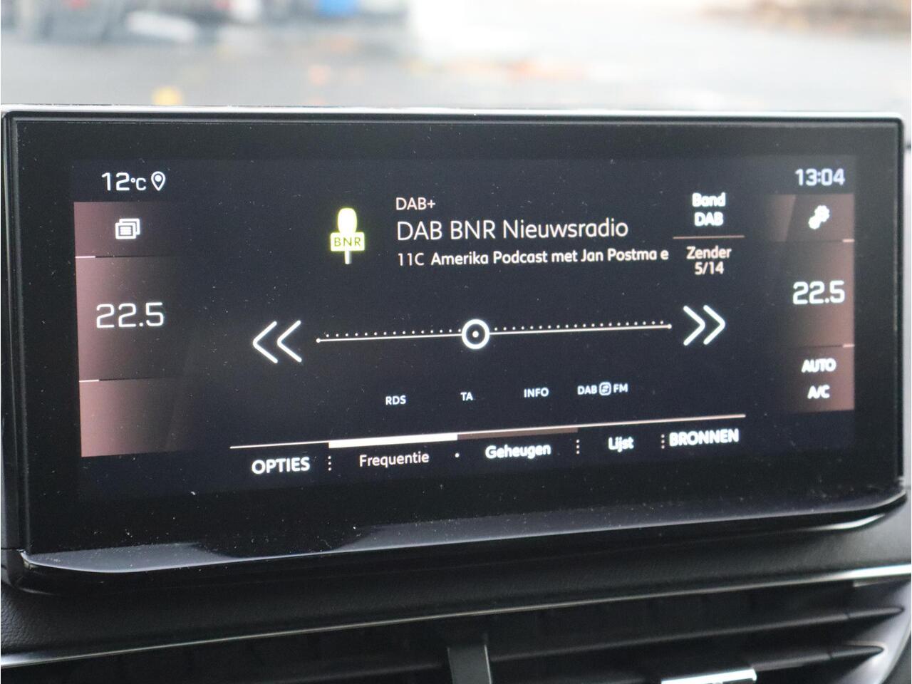 biedt de 360 graden camera een naadloos en gedetailleerd beeld van de hele omgeving rondom deze auto. Met adaptive cruise control houdt deze auto automatisch afstand tot uw voorligger. Connected Services zorgen ervoor dat de belangrijkste functies en data van de auto altijd en overal te checken zijn. Gewoon via de app op de smartphone. Deze Peugeot is voorzien van spraakbediening voor het full map navigatiesysteem en voor het audiosysteem met DAB-ontvangst. Maar u kunt ook de knoppen op het stuur gebruiken. Deze Peugeot is voorzien van electronic climate control
