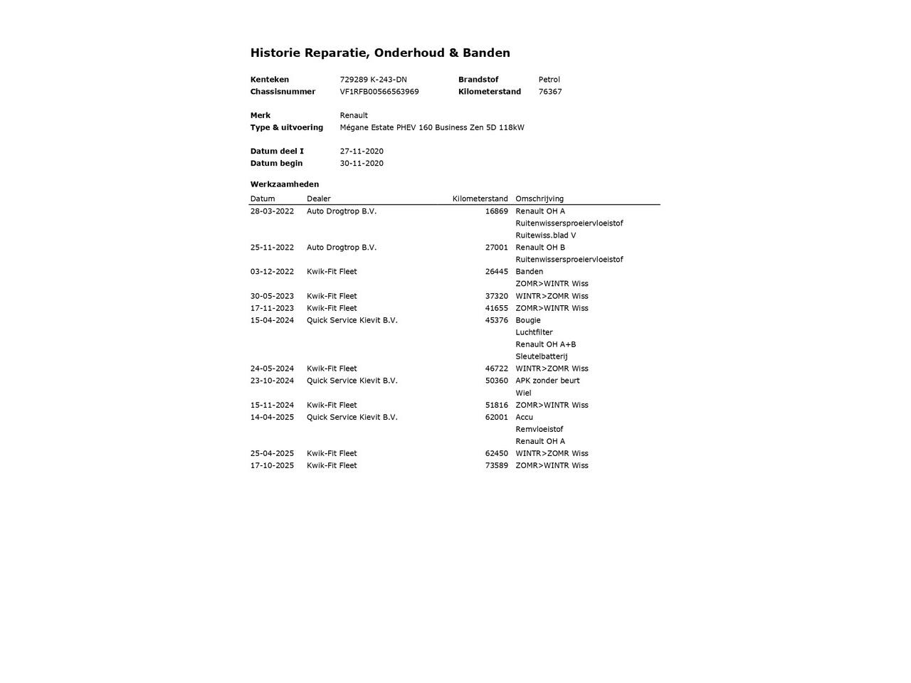 ? BOVAG Afleverbeurt - volgens fabrieksschema