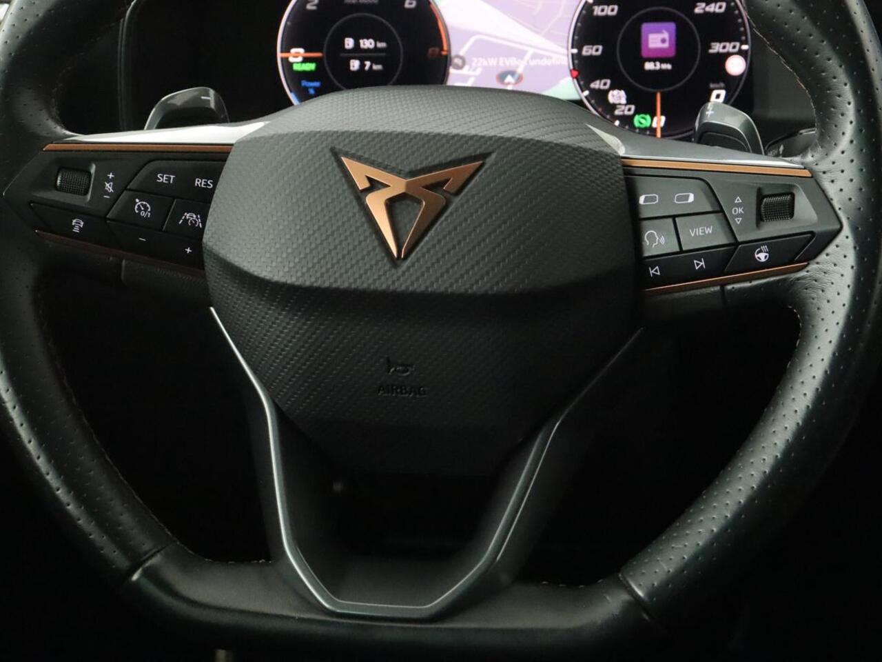 deze CUPRA Leon biedt alles wat u van een auto verlangt. Deze auto komt uit 2022. Elektrisch rijden of benzine? Deze hybride CUPRA Leon combineert de pluspunten van allebei naar keuze. Boven uw hoofd schuiven de wolken zichtbaar voorbij door het elektrisch bediende glazen panorama dak. En kijk eens aan de achterzijde wat gemakkelijk: een eveneens elektrisch bedienbare achterklep! Op koude en donkere dagen zijn de verwarmbare voorstoelen een uitkomst. De sportstoelen zorgen ervoor dat u goed en comfortabel zit