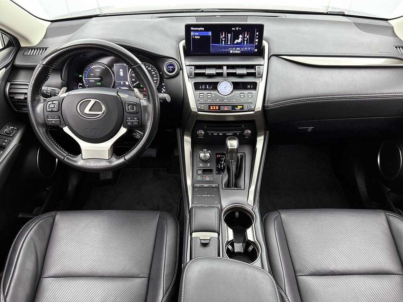 De eendrachtige samenwerking van de benzinemotor en de elektromotor geeft deze Lexus NX zijn geweldige rijkwaliteiten. Een krachtige motor geeft deze auto zijn sportieve prestaties. Niets geeft meer gevoel van luxe en comfort dan een lederen interieur. Ook dat is hier meegeleverd De verwarmbare voorstoelen benadrukken nog maar eens dat we hier te maken hebben met een regelrechte verwenauto voor bestuurder en bijrijder. Met een druk op de knop gaat de elektrische achterklep open. Verder is de Lexus uitgerust met: 18 inch lichtmetalen velgen