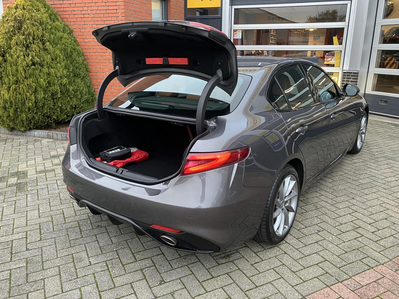 verbluffend actueel in extra's en opties... Deze Alfa Romeo Giulia heeft het allemaal! De aandrijving komt voor rekening van een benzinemotor en een automatische transmissie. Het lederen interieur ademt luxe