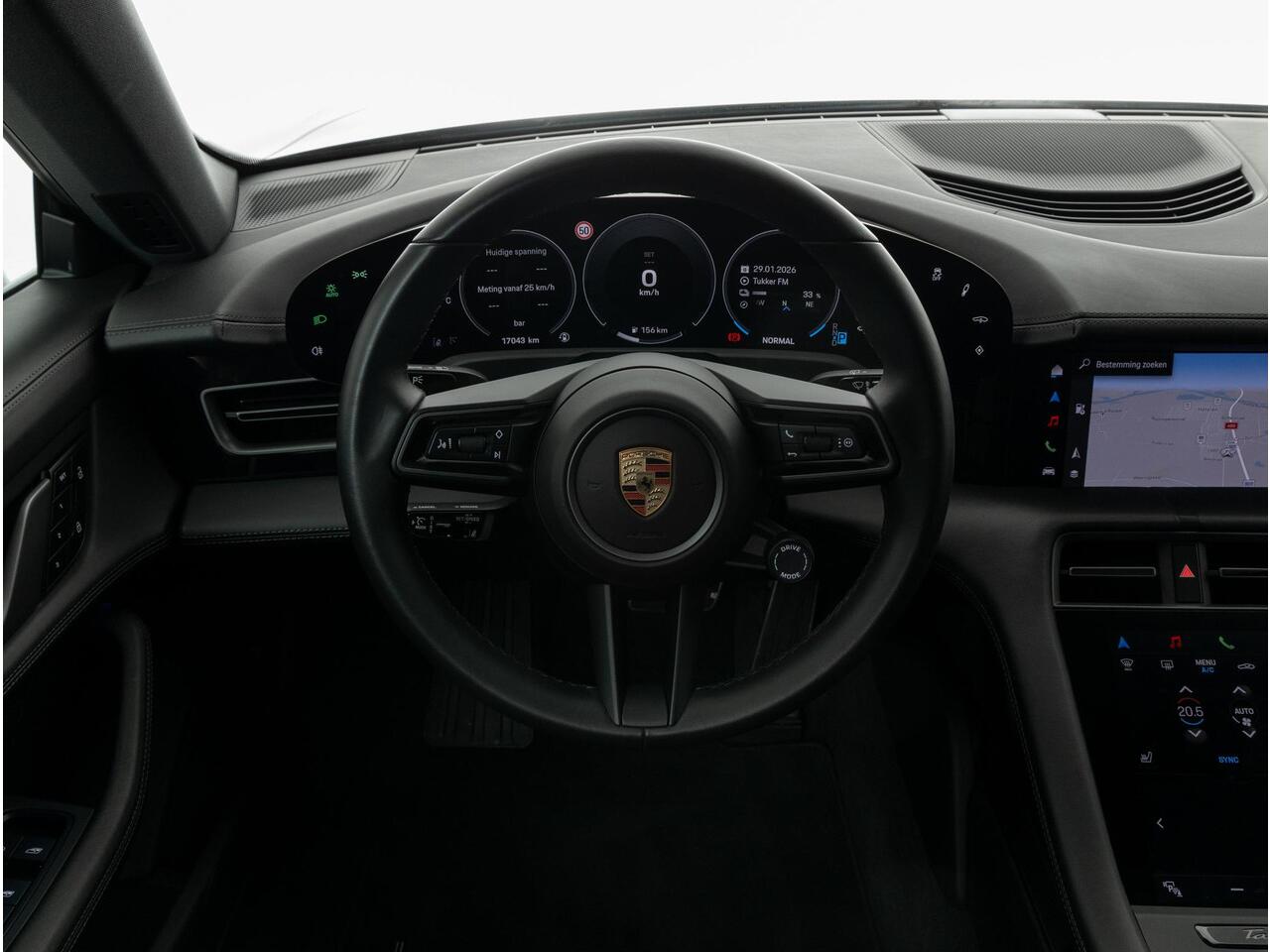 Deze Porsche Taycan Sport Turismo in de kleur Diepzwart metallic heeft slechts 17.036 kilometers gereden. De Porsche onderscheidt zich onder andere door unieke opties