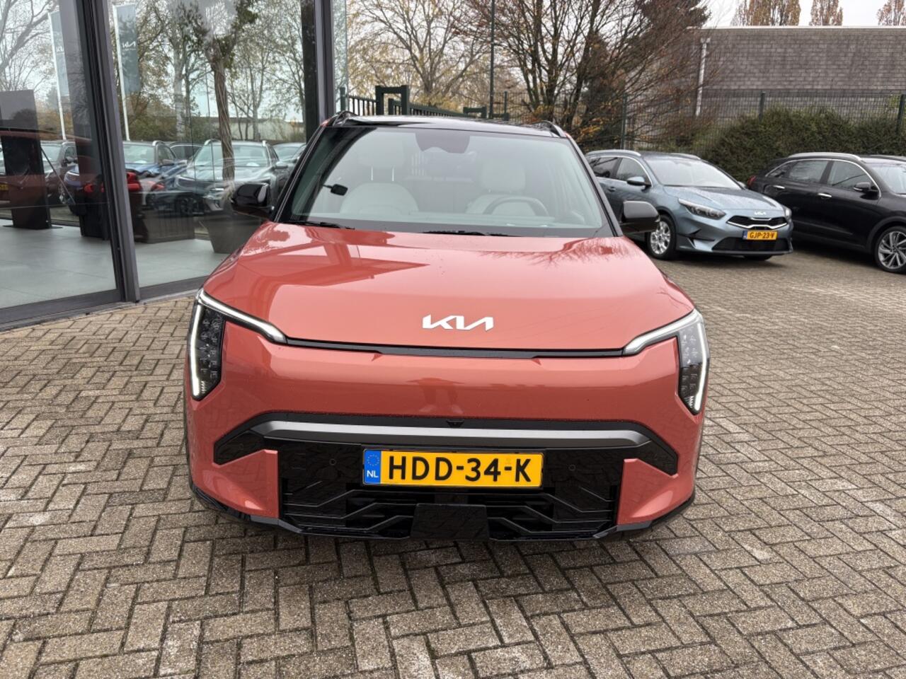 De opvallende oranje kleur van deze Kia EV3 GT-PlusLine zorgt ervoor dat je zeker de aandacht zult trekken op de weg. De metallic lak laat de auto stralen in de zon en geeft hem een luxe uitstraling. Met slechts 9071 kilometer op de teller is deze SUV nog zo goed als nieuw en klaar om vele avonturen tegemoet te gaan.