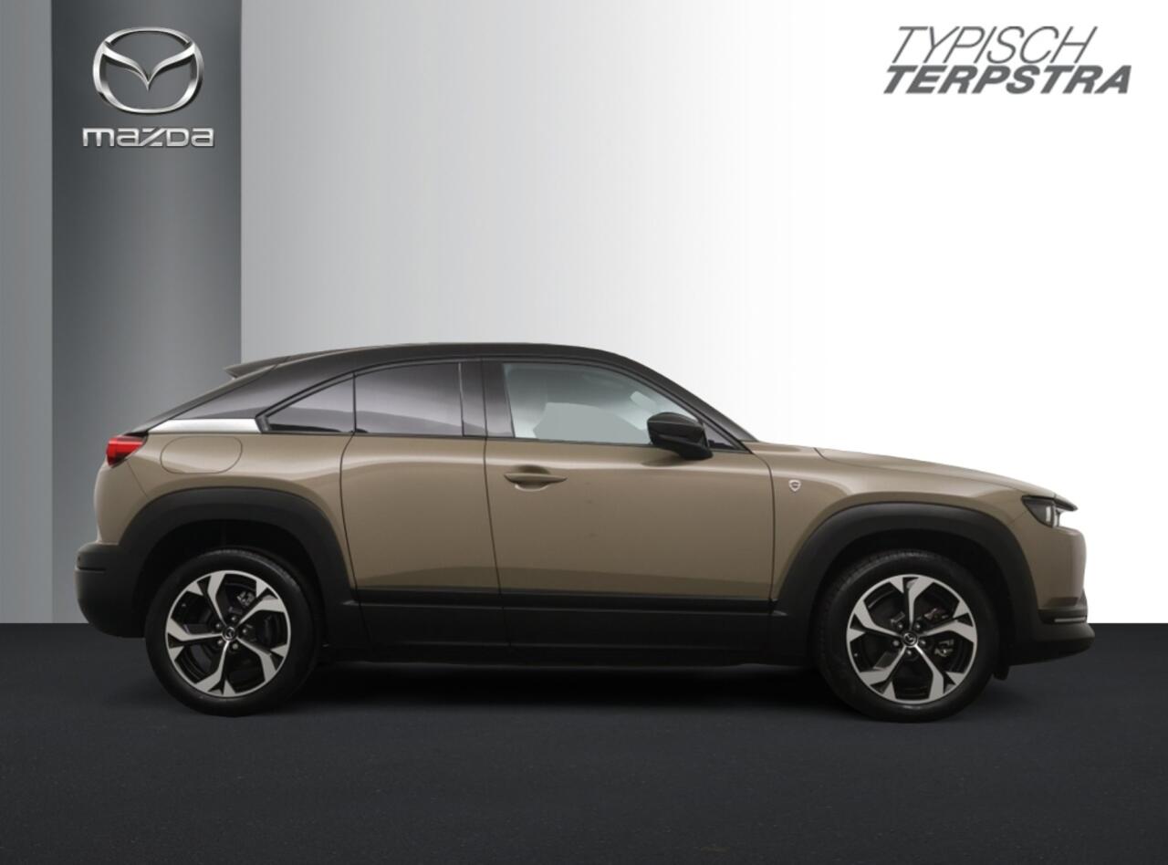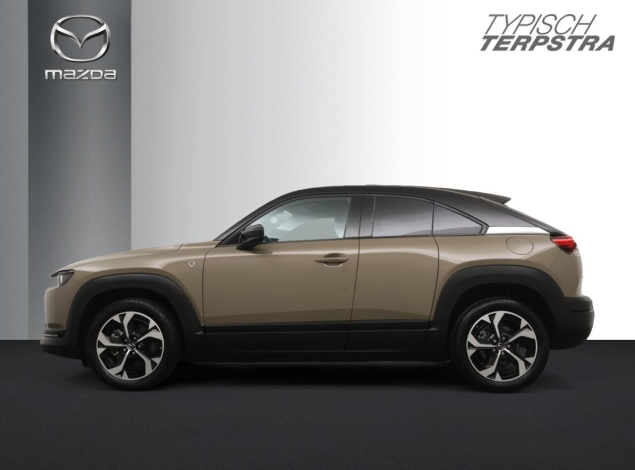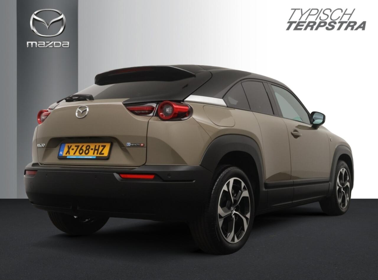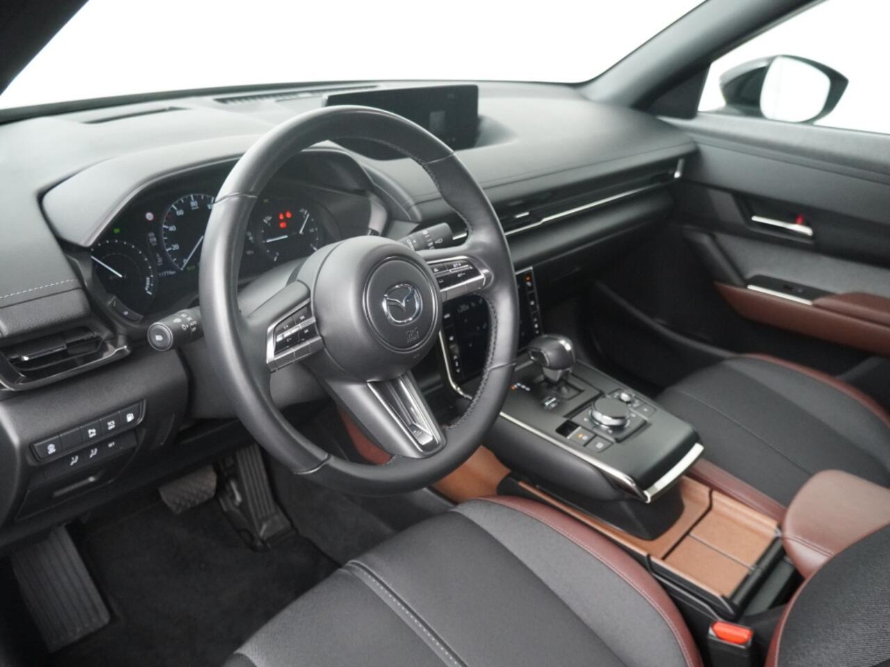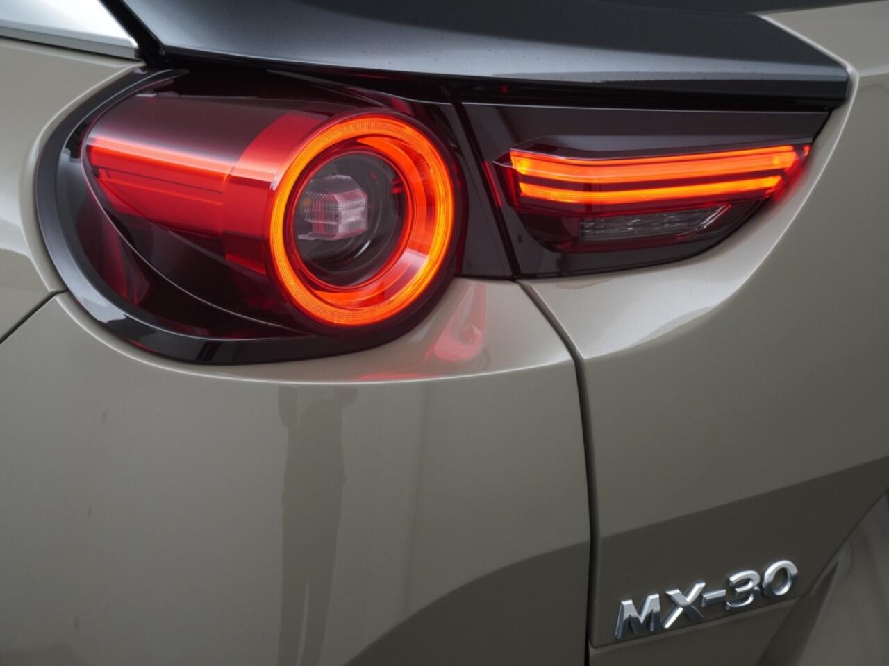 De MX-30 e-Skyactiv R-EV met rotatiemotor voor het opladen van de batterij. Deze soepel rijdende Mazda MX-30 R-EV wordt alleen aangedreven door een elektromotor. Maar terwijl je rijdt