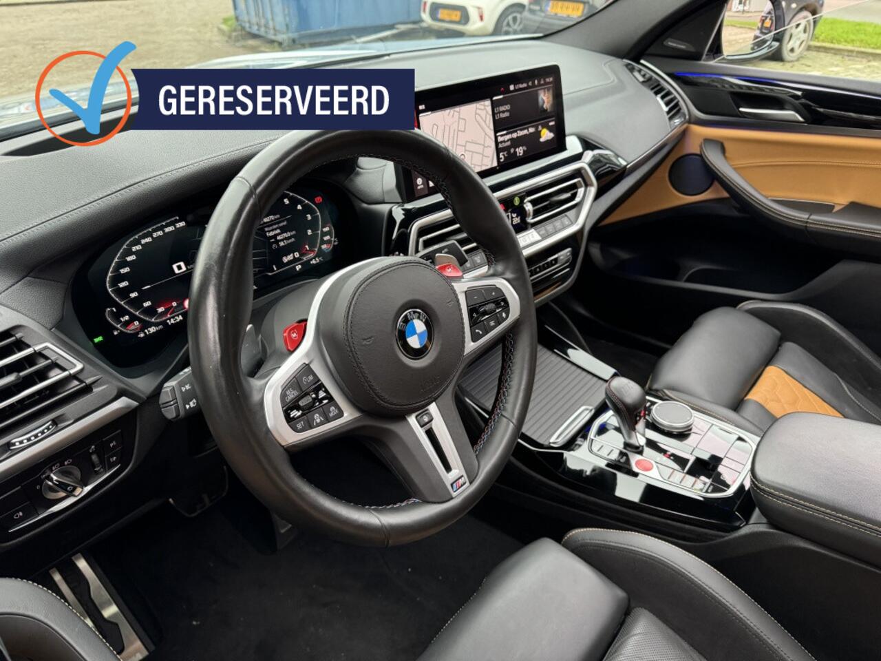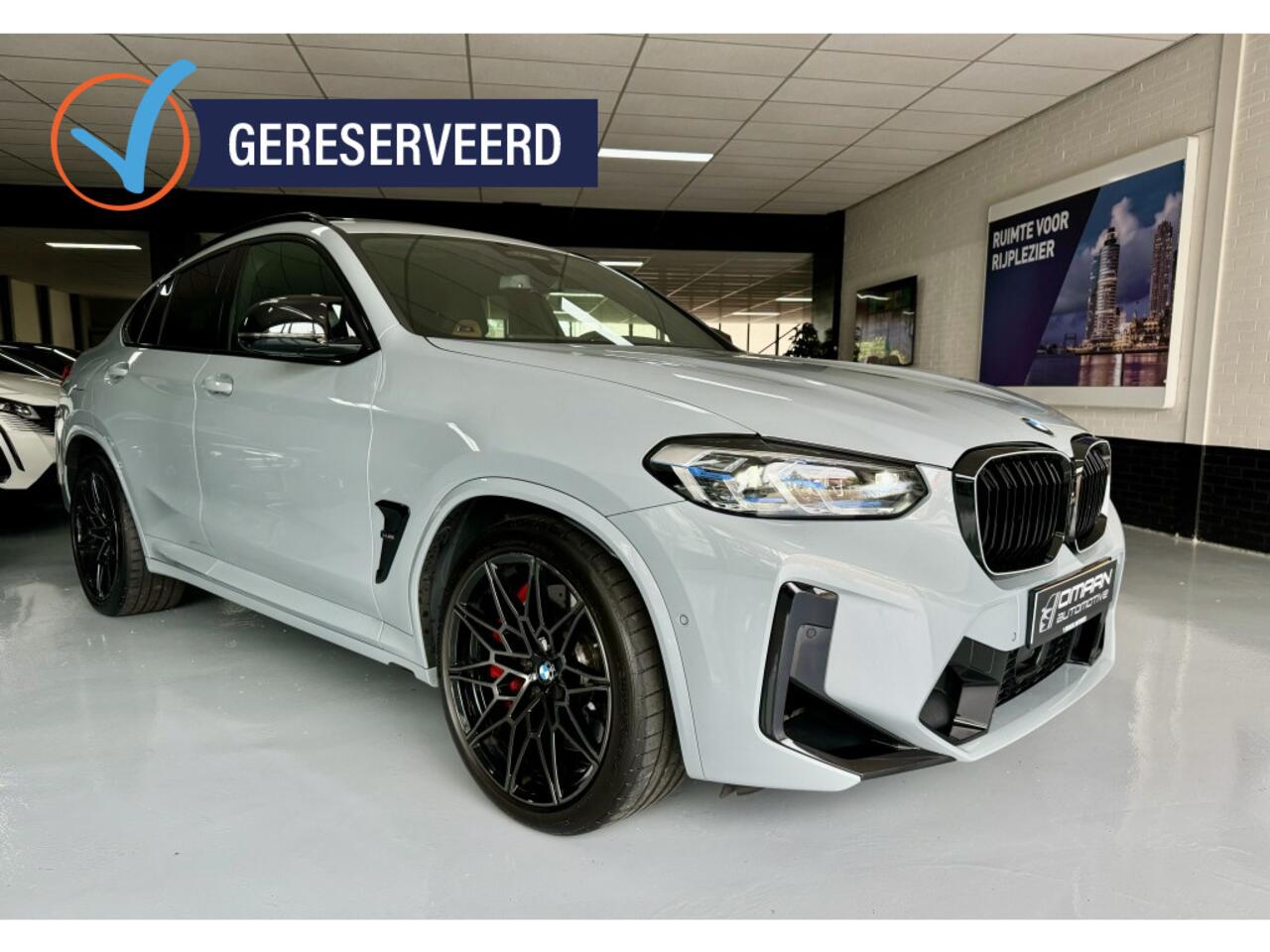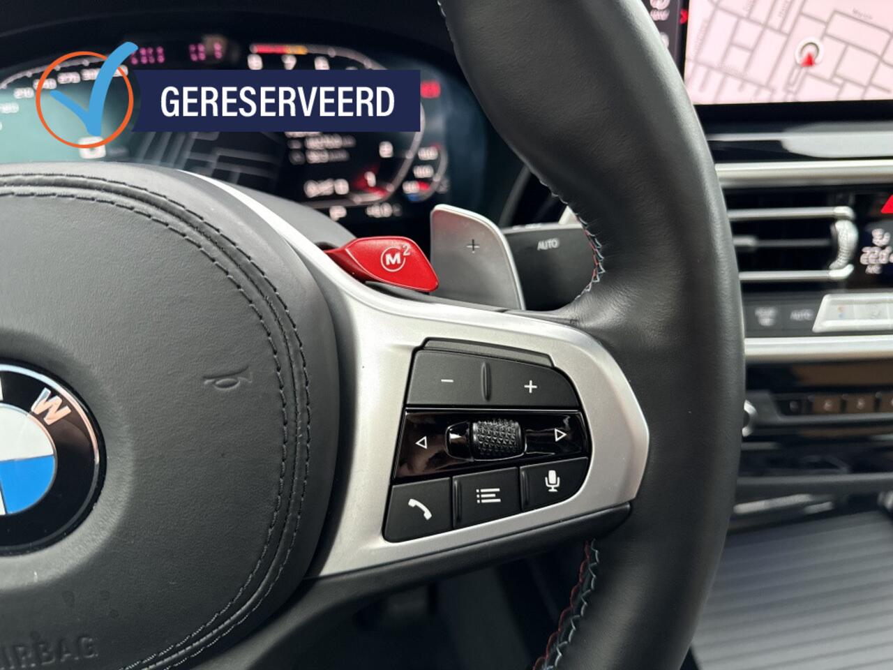die informatie projecteert op de voorruit. Verkeersborddetectie herkent tijdelijke en permanente verkeersborden langs en boven de weg. Het Lane-keeping systeem let constant op en waarschuwt of corrigeert als u onoplettend over de lijnen van de rijstrook gaat. Bovenop deze veiligheidsfeatures heeft deze Facelift BMW X4M bovendien dodehoekdetector