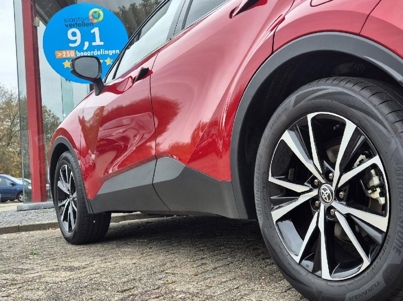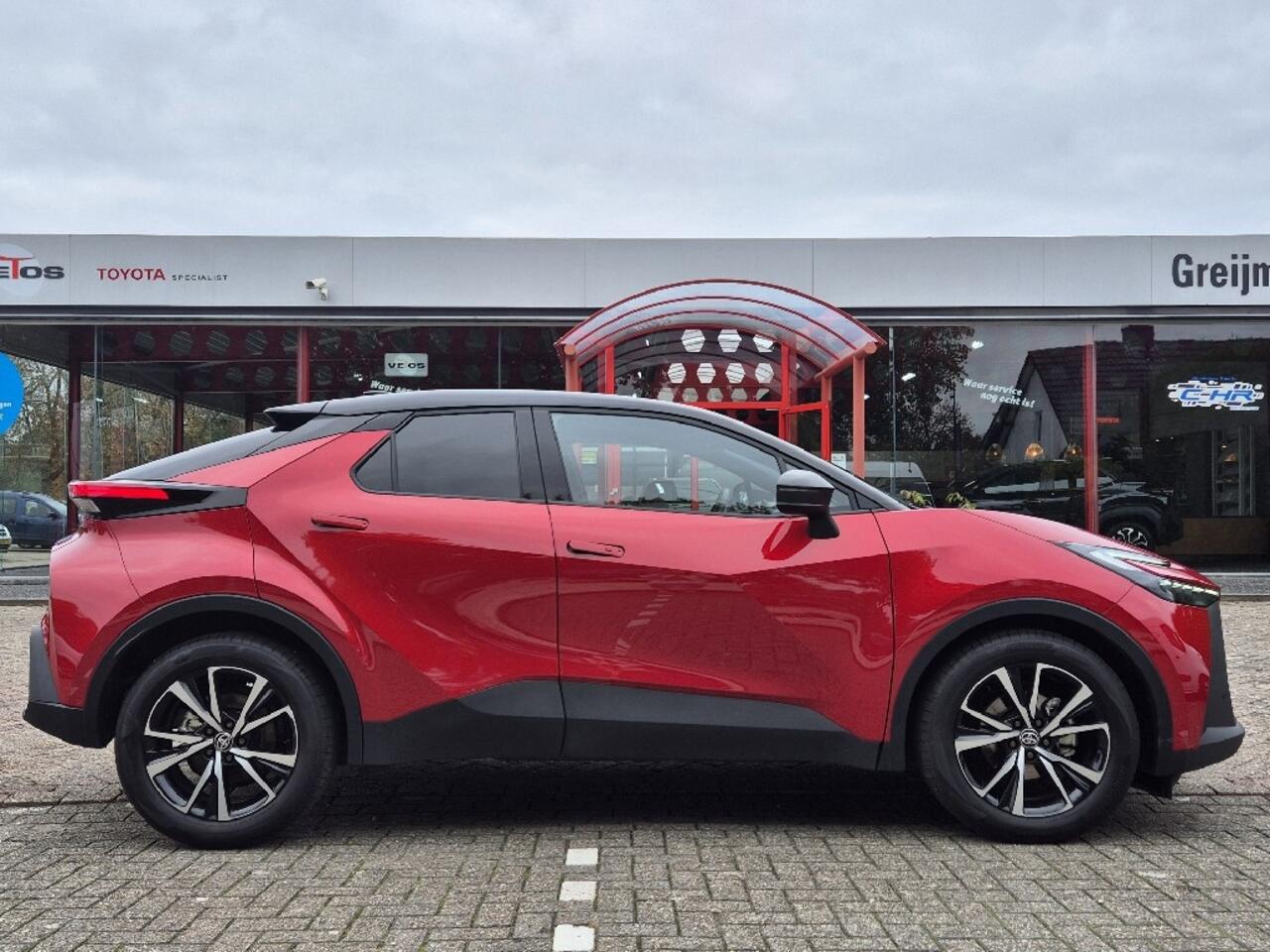 zuinig én stijlvol! Deze luxe Toyota C-HR uit 2025 valt direct op door zijn unieke Premium Rood lak met contrasterend zwart dak. Uitgerust met de nieuwste 1.8 Hybrid motor van Toyota