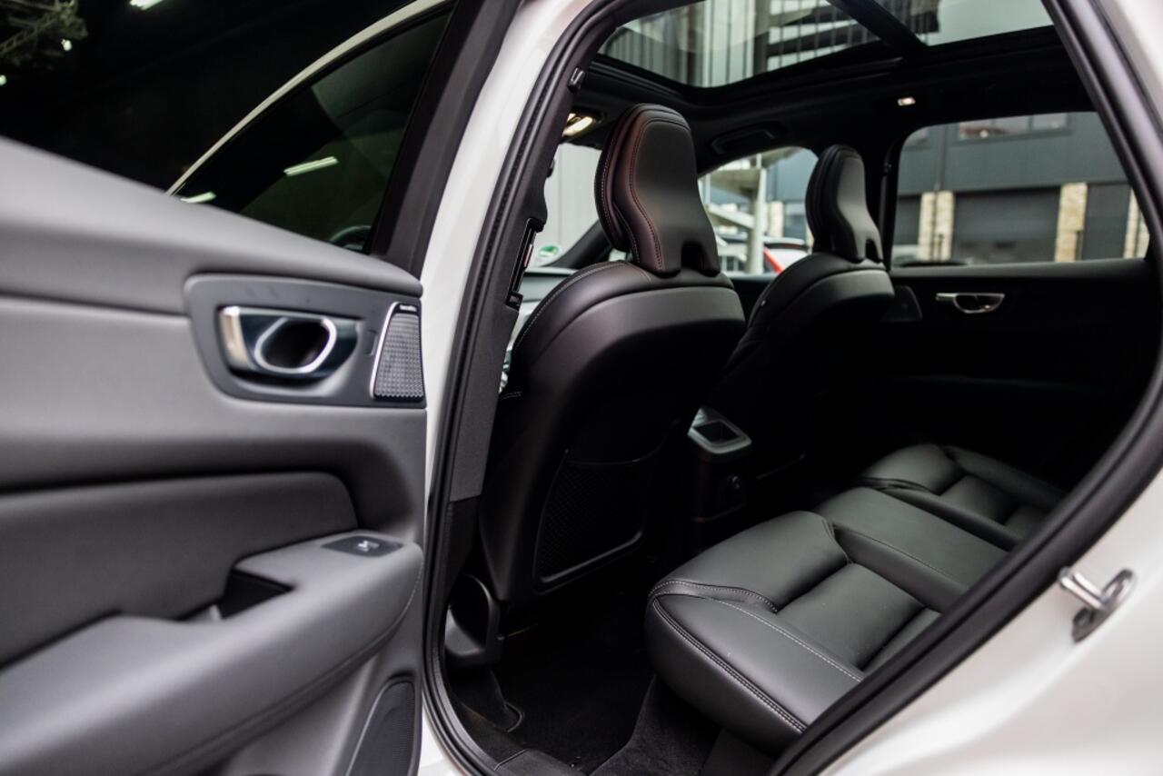 zodat bestuurder en bijrijder altijd fit en soepel uitstappen. Licht en lucht komen onbelemmerd binnen als het elektrisch bediende glazen panoramadak met één druk op de knop wordt geopend. Deze Volvo XC60 is niet zuinig met comfort. Wat dacht u van een verwarmde achterbank? Verder is de Volvo uitgerust met: adaptieve led-koplampen