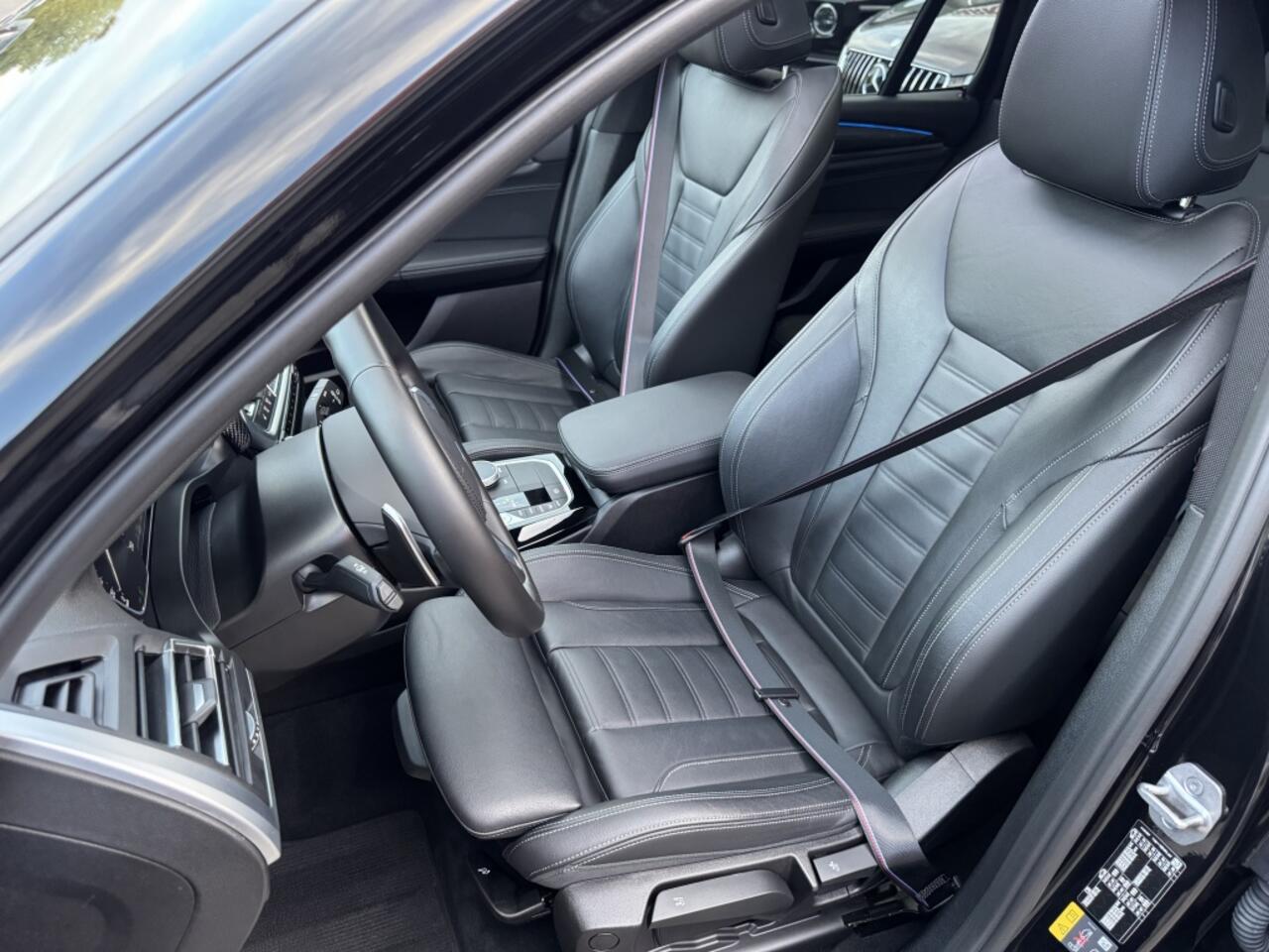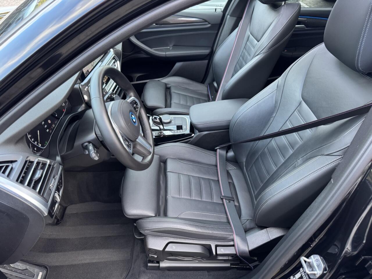Facelift Model 2022 BMW X3 xDrive30e M-Sport Pakket 292 Pk Dealer Onderhouden 1e eigenaar 04-2022 Saphir Zwart Metallic met 72 Dkm Opties: Panoramadak Vol Lederen Sportstoelen M Pakket Int/Ext Shadow Line (black optik) Keyless Start/Entry Apple Carplay Achteruitrij Camera Led Koplampen Getint Glas Parkeersensoren V+A Sfeerverlichting in Kleur Instelbaar Lederen Airbag Cruise Control Navigatie Groot Climate Control 3 Zone Stoelverwarming V+A Bluetooth Telefoon DAB Radio Spiegels Elektrisch Inklapbaar Digitale Cockpit Groot Elektrische Achterklep Dodehoek Detectie Sportonderstel Instelbaar 20 Inch BMW M-Sport Velgen.