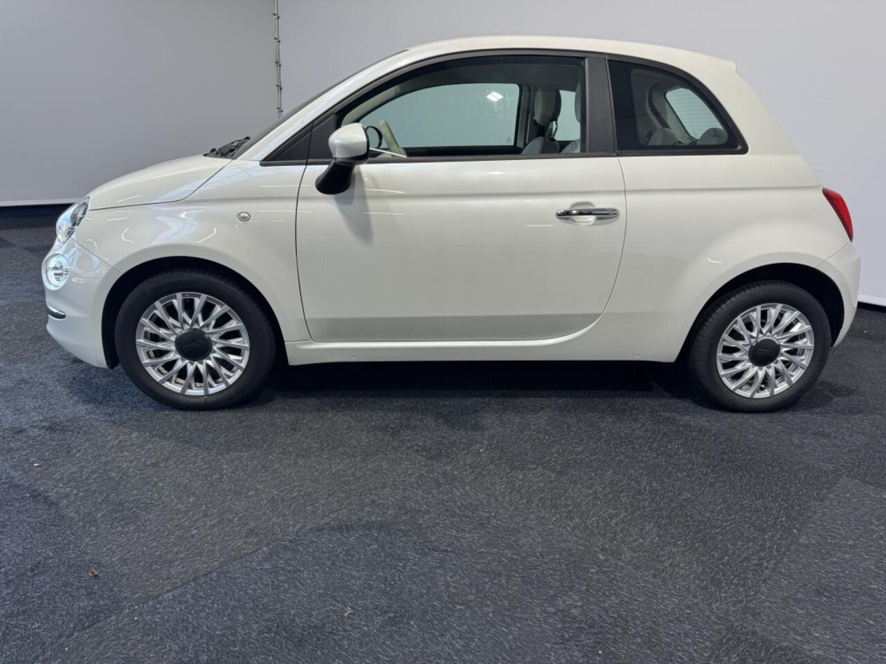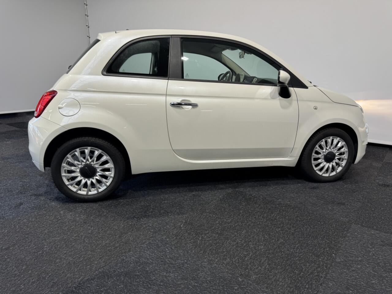 De Fiat 500 is uitgevoerd in een stralend witte kleur die zorgt voor een frisse en moderne uitstraling. De metallic lak in parelmoer finish voegt een vleugje elegantie toe aan het exterieur. Dankzij de compacte hatchback carrosserie en 3 deuren is deze auto perfect geschikt voor het drukke stadsverkeer
