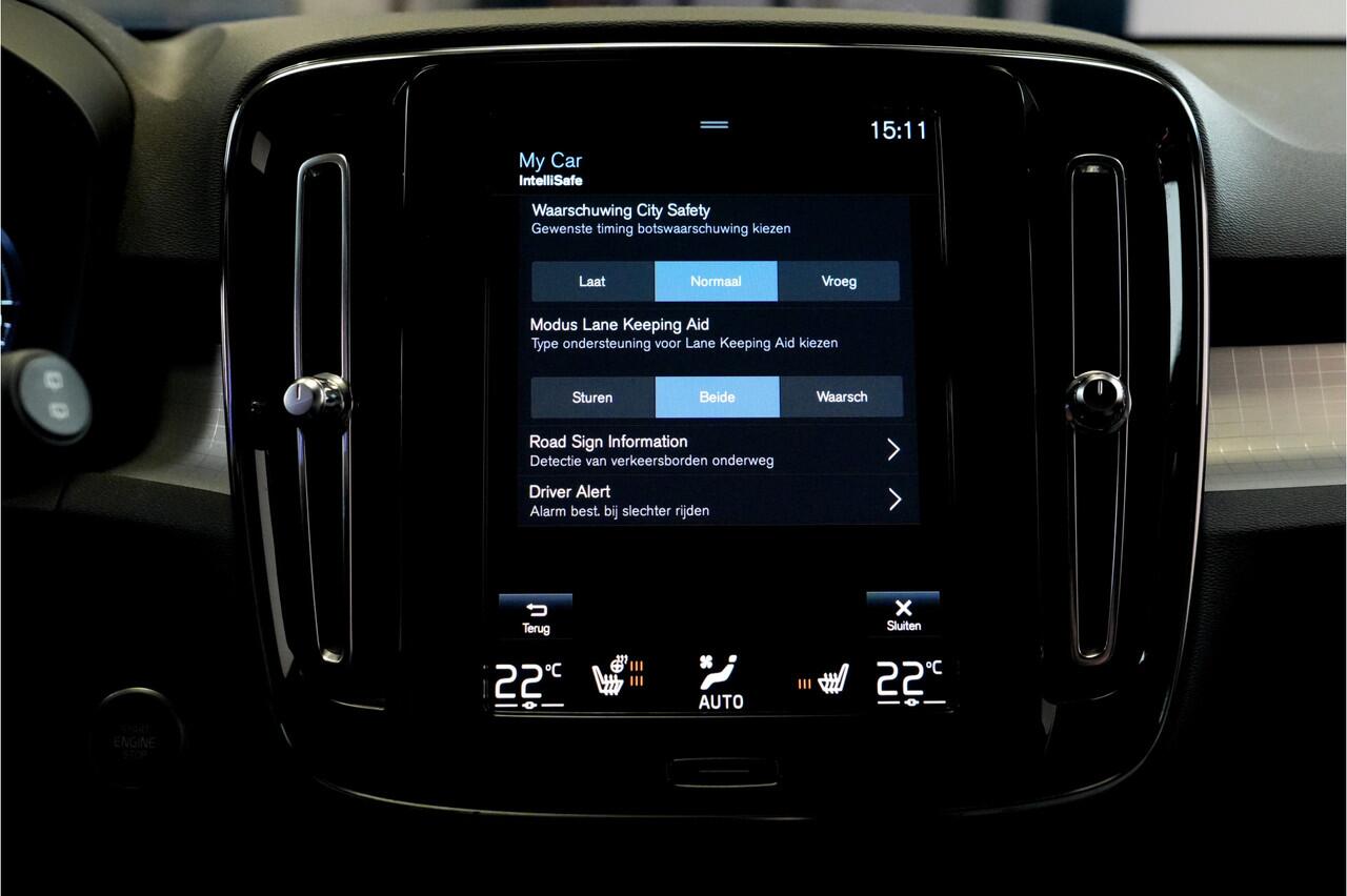 innovatie en vooral veilig en vooruitstrevend rijden. Natuurlijk ook in dit model. De hybride motor van deze Volvo XC40 zorgt dat u opvallend veel minder brandstof verbruikt dankzij de ondersteuning van de elektromotor met z'n eigen accu. En die laadt u al rijdend bij. Slim en zuinig! Deze Volvo XC40 heeft verwarmbare voorstoelen