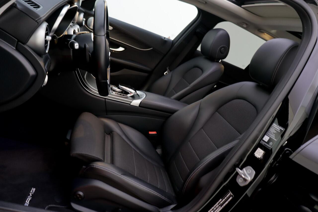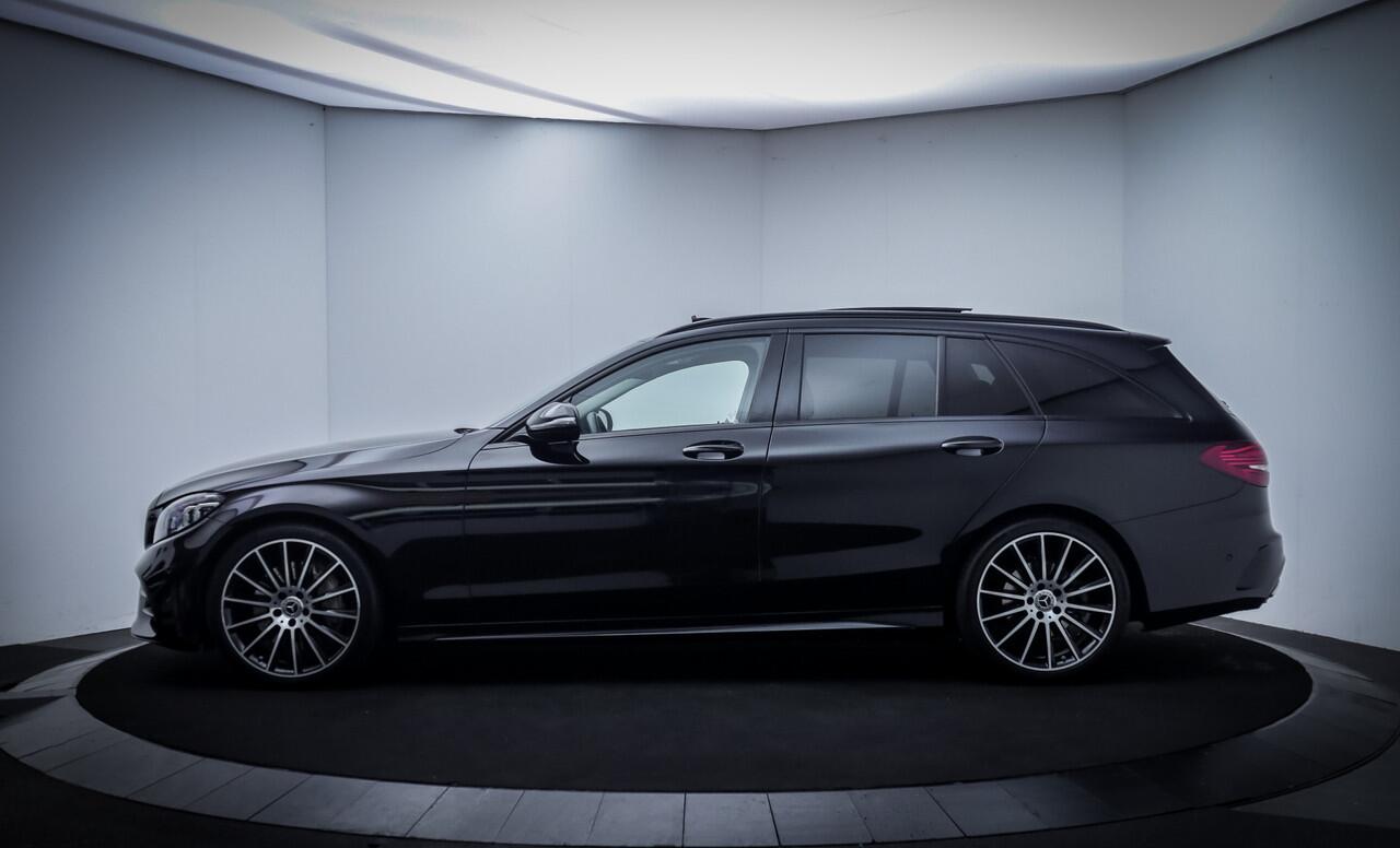 topkwaliteit en uitstekende prestaties. Zo ook bij deze Mercedes-Benz C-klasse Estate. Een en al Duitse klasse. De verschillende elementen van de AMG-styling accentueren de dynamische lijnvoering van deze C-klasse Estate. De krachtige benzinemotor van deze auto is gekoppeld aan een automatische transmissie. De lederen bekleding geeft het interieur een hoogwaardige uitstraling. Ga samen met uw bijrijder lekker zitten in de verwarmbare voorstoelen. Voor extra lichtinval en een frisse luchtstroom zorgt het elektrisch bediende panoramadak. Met een druk op de knop gaat de elektrische achterklep open. Opvallend is de geavanceerde matrix LED-verlichting met daglichtkwaliteit. De koplampen dimmen automatisch het deel van de lichtstraal waar voor- of tegenliggers in rijden. De overige segmenten blijven aan en verlichten de weg maximaal. Ook 19 inch lichtmetalen velgen