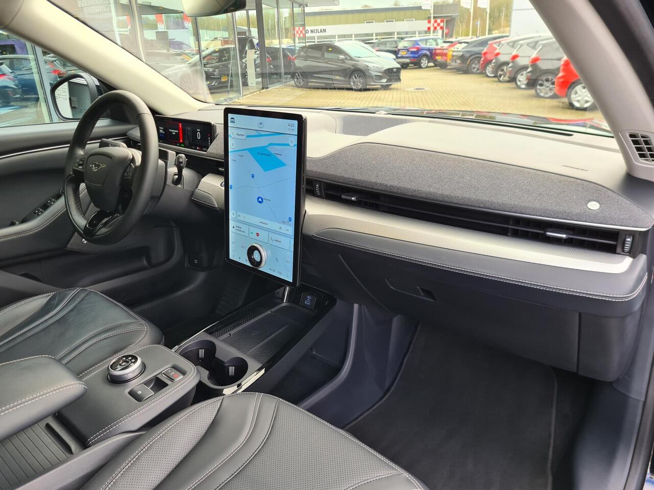moderne veiligheidsvoorzieningen en volop rijplezier. Met deze Ford Mustang Mach-E kiest u voor een auto die alles heeft wat u belangrijk vindt. De fluisterstille elektromotor zorgt voor een serene rijervaring. Koude start? Niet met de verwarmbare voorstoelen! Een praktische extra is de elektrisch bedienbare achterklep die opent en sluit met een druk op de knop. Geniet van de lichtinval en het uitzicht van het grote glazen panoramadak. Natuurlijk kunt u zonder. Maar waarom? Lekker toch