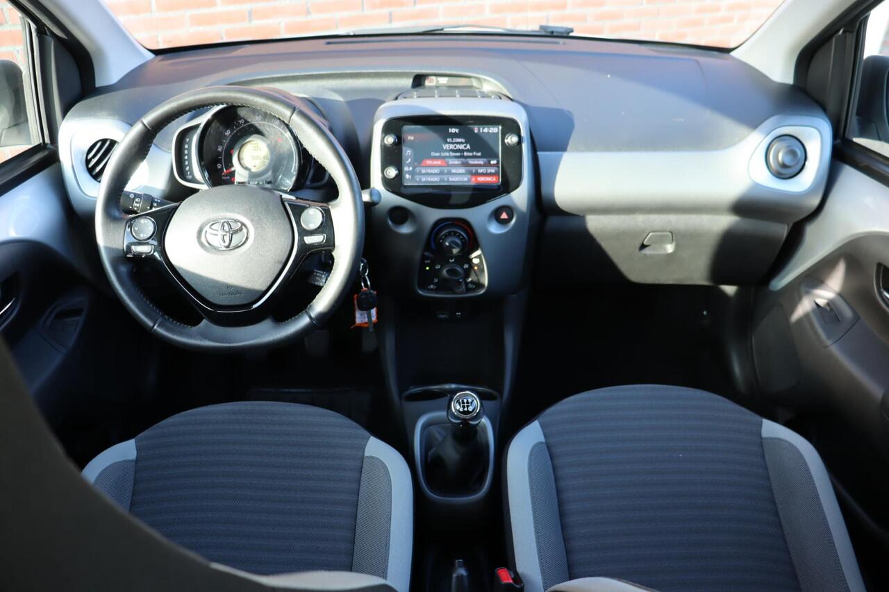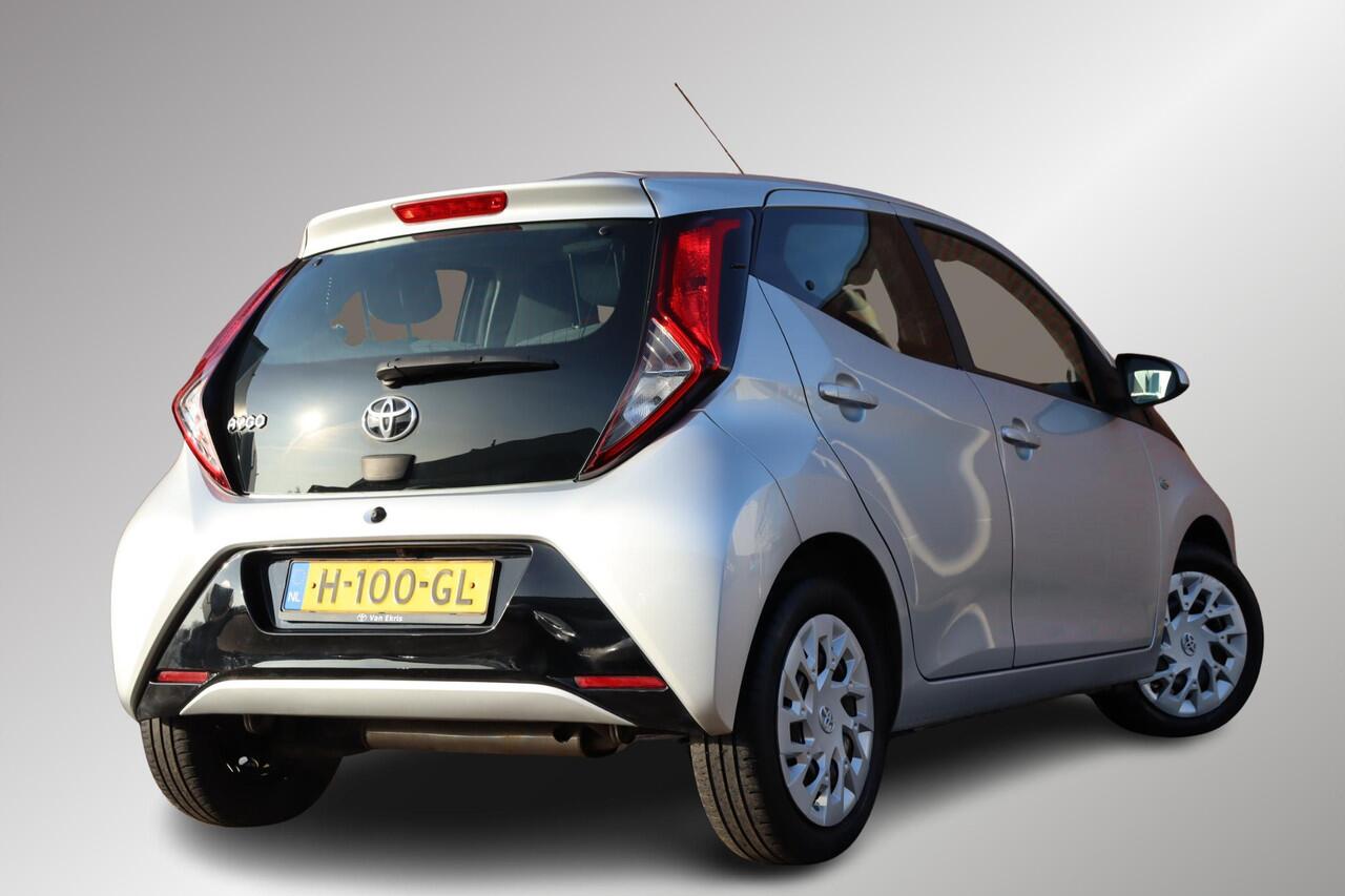 ...Aygo 5-Deurs X-Play in de kleur Satin Silver metallic. Voorzien van Parkeercamera