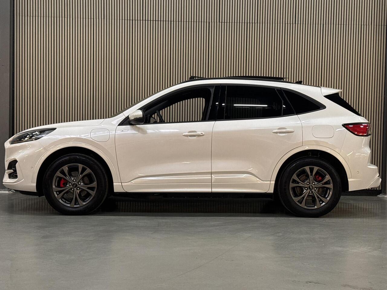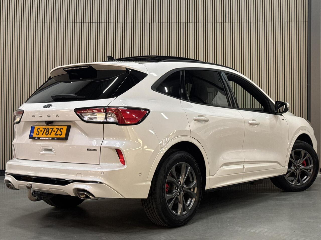 complete en sportieve KUGA 2.5 PHEV 225pk Hybrid Automaat ST Line-X in de kleur Platinum White parelmoer metallic en voorzien van Elektrisch wegklapbare Trekhaak