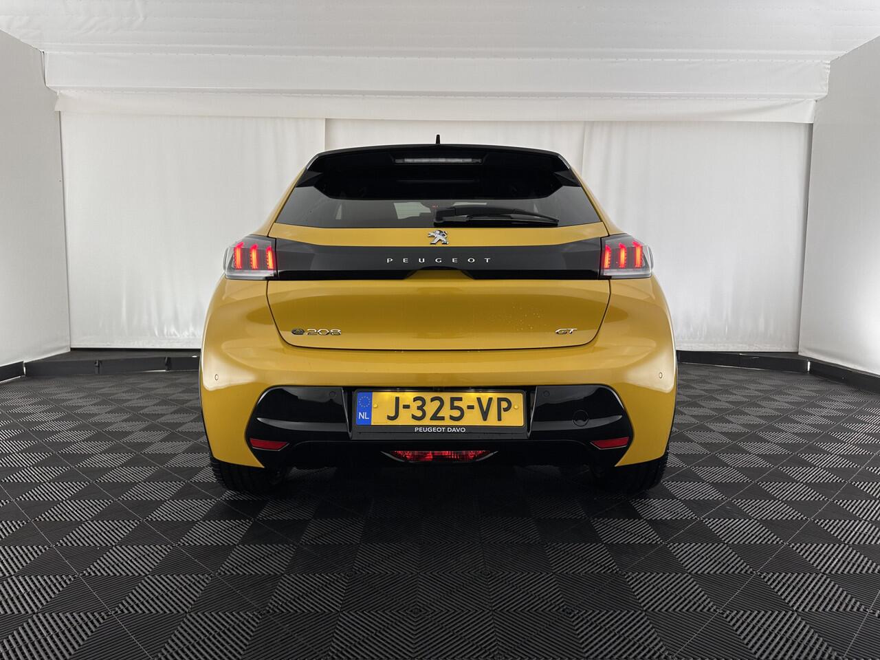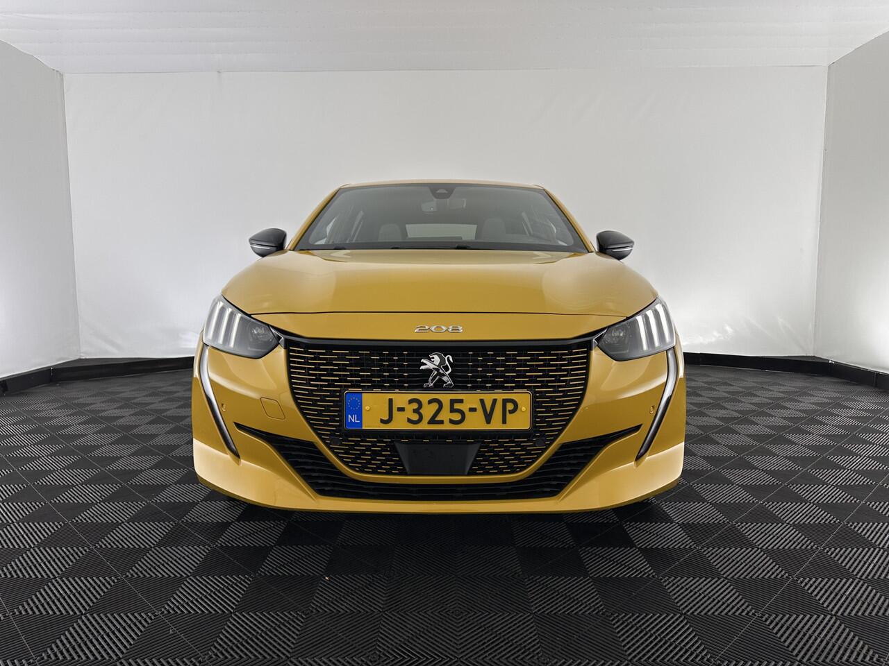 ? Peugeot e-208 EV GT 350 50 kWh - in Jaune Faro Metallic met grijs-zwart GT Premium "Capy" Alcantara/Leder interieur met gele stiksels | Elektrisch