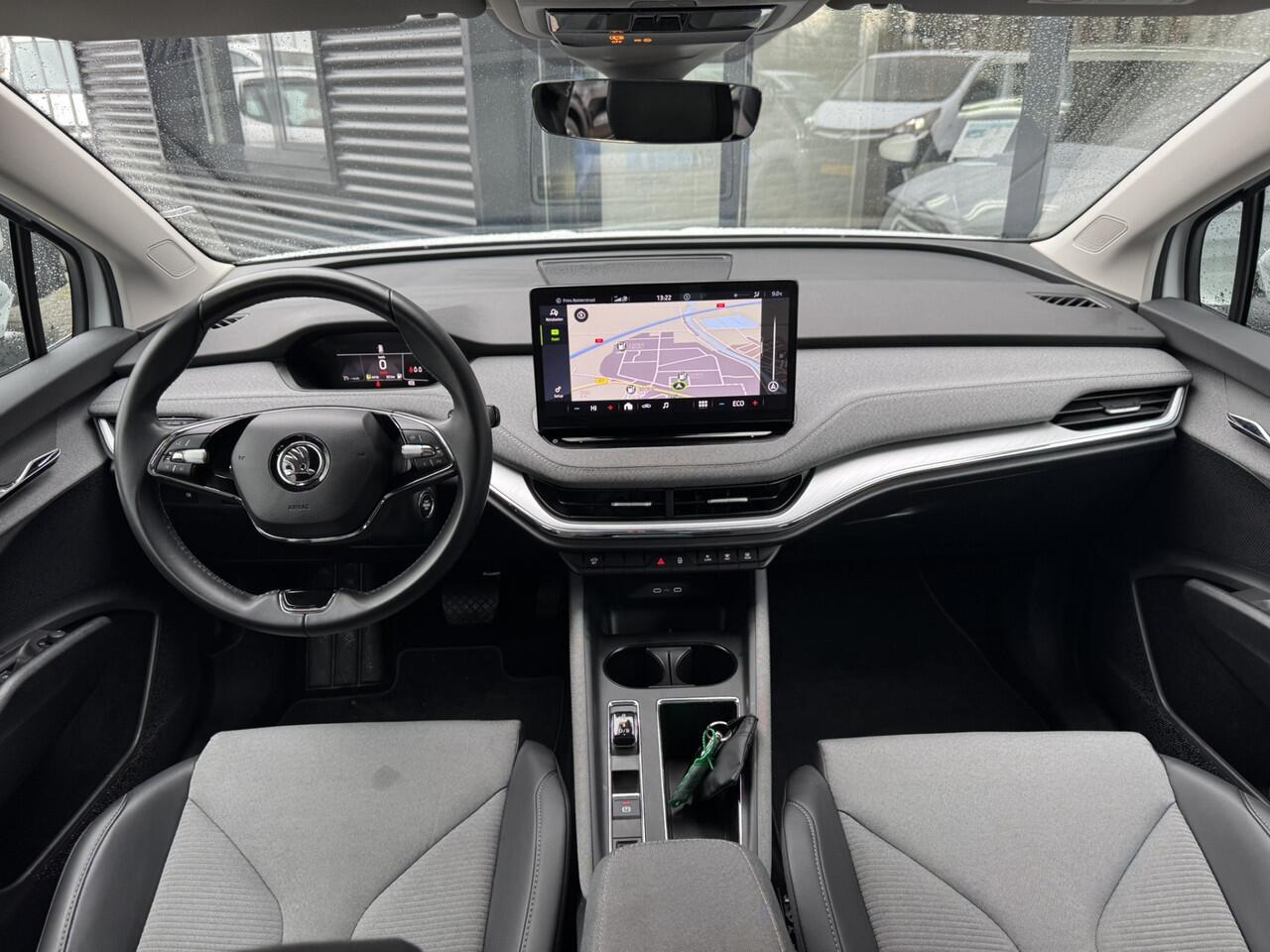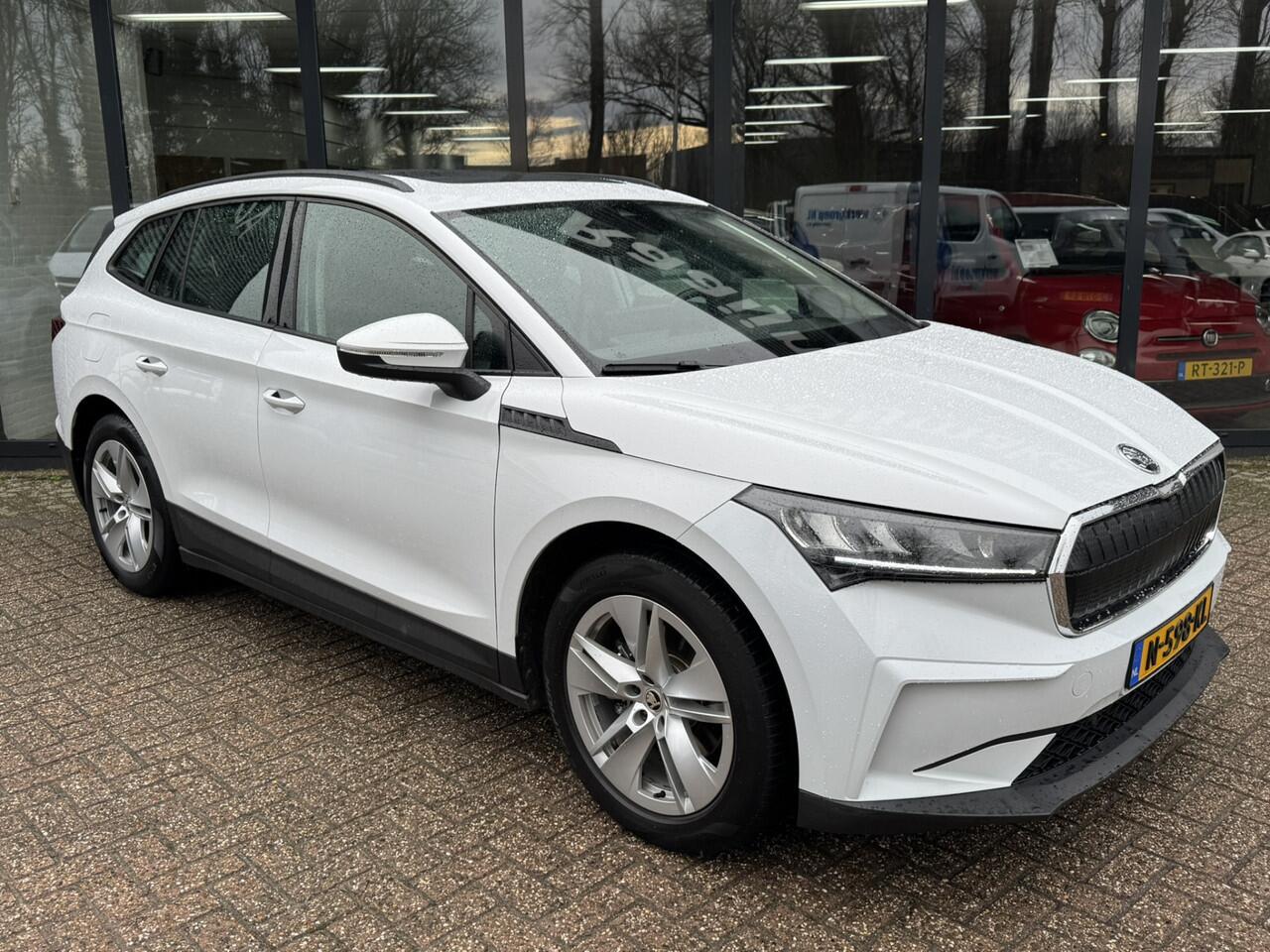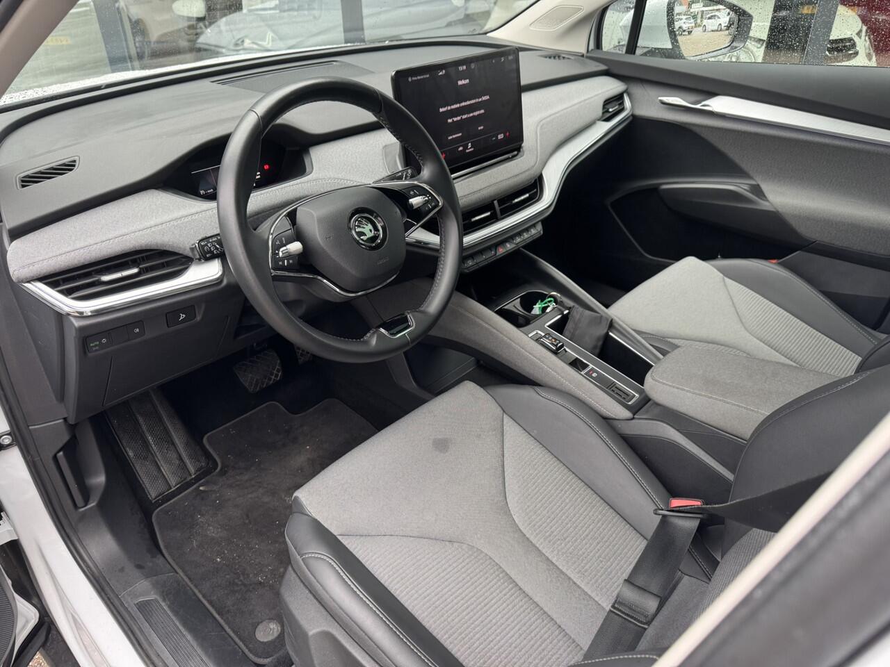 elke keer als u op weg gaat met deze ŠKODA Enyaq iV. De fluisterstille elektromotor zorgt voor een serene rijervaring. De krachtige motor geeft deze ŠKODA uitstekende prestaties. Het glazen panoramadak zorgt ervoor dat u zich omringd voelt door de omgeving. Tot de uitrusting van deze ŠKODA behoren ook 19 inch lichtmetalen velgen