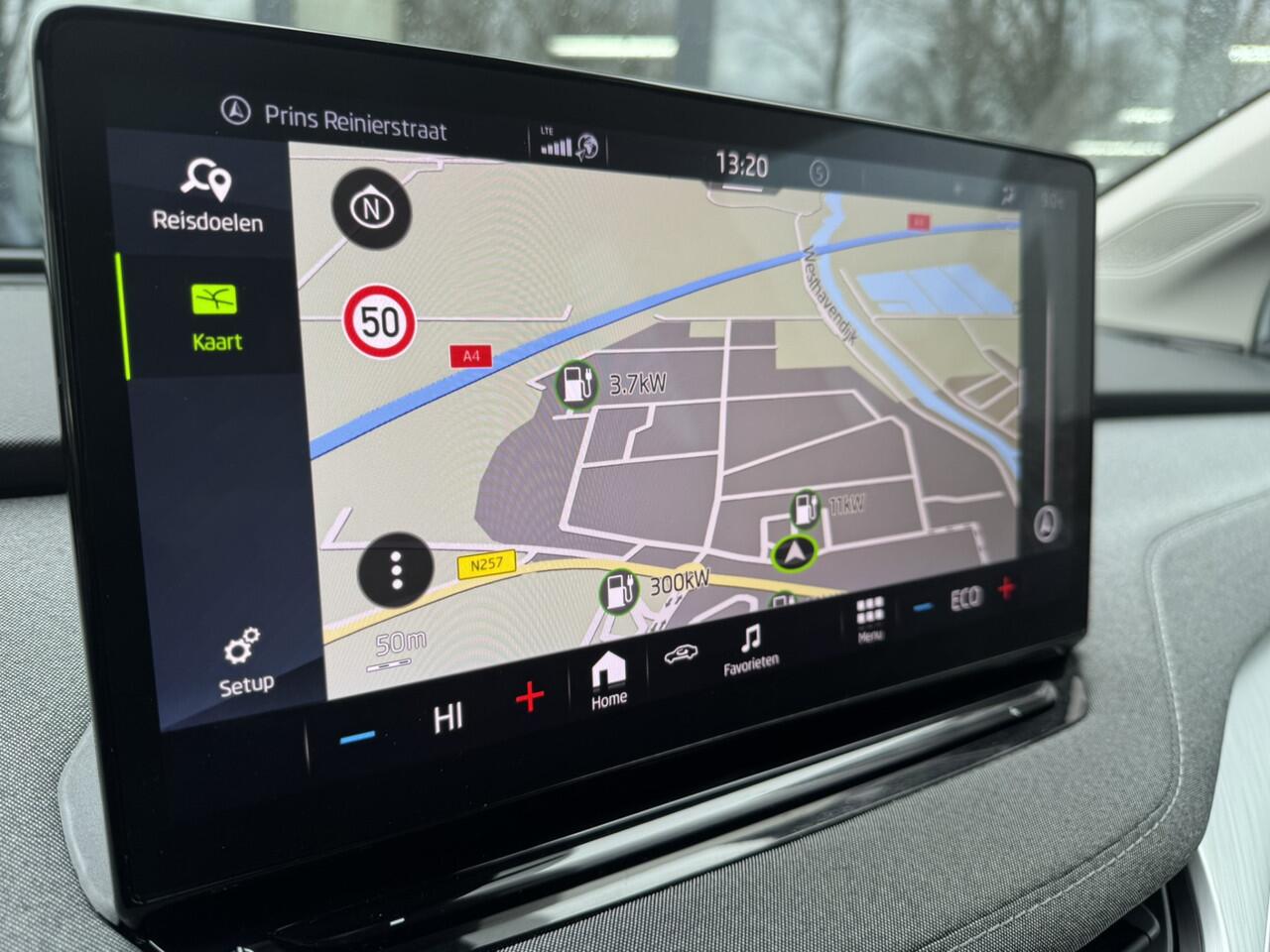 Met het digitale dashboard in deze auto kunt u de interface van uw cockpit personaliseren. Deze ŠKODA Enyaq iV is 'connected'. Belangrijke functies worden permanent gemeten en zijn uit te lezen via een speciale app