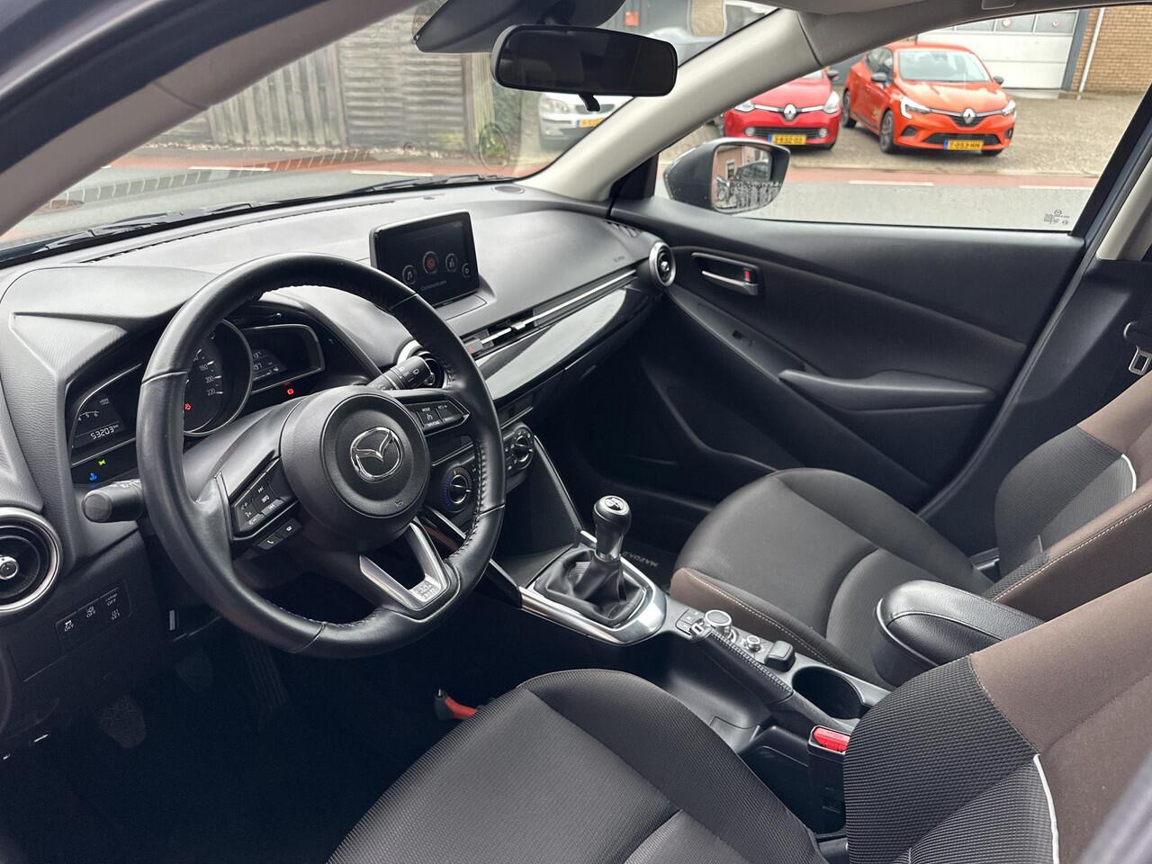 beschikt hij over diverse veiligheidssystemen. Deze Mazda 2 is ook behulpzaam als het gaat om een rechte koers. Het Lane-keeping systeem signaleert en corrigeert als u onbedoeld de rijstrooklijnen dreigt te overschrijden. Een noodstop maken doet u liever niet. Maar áls het nodig is