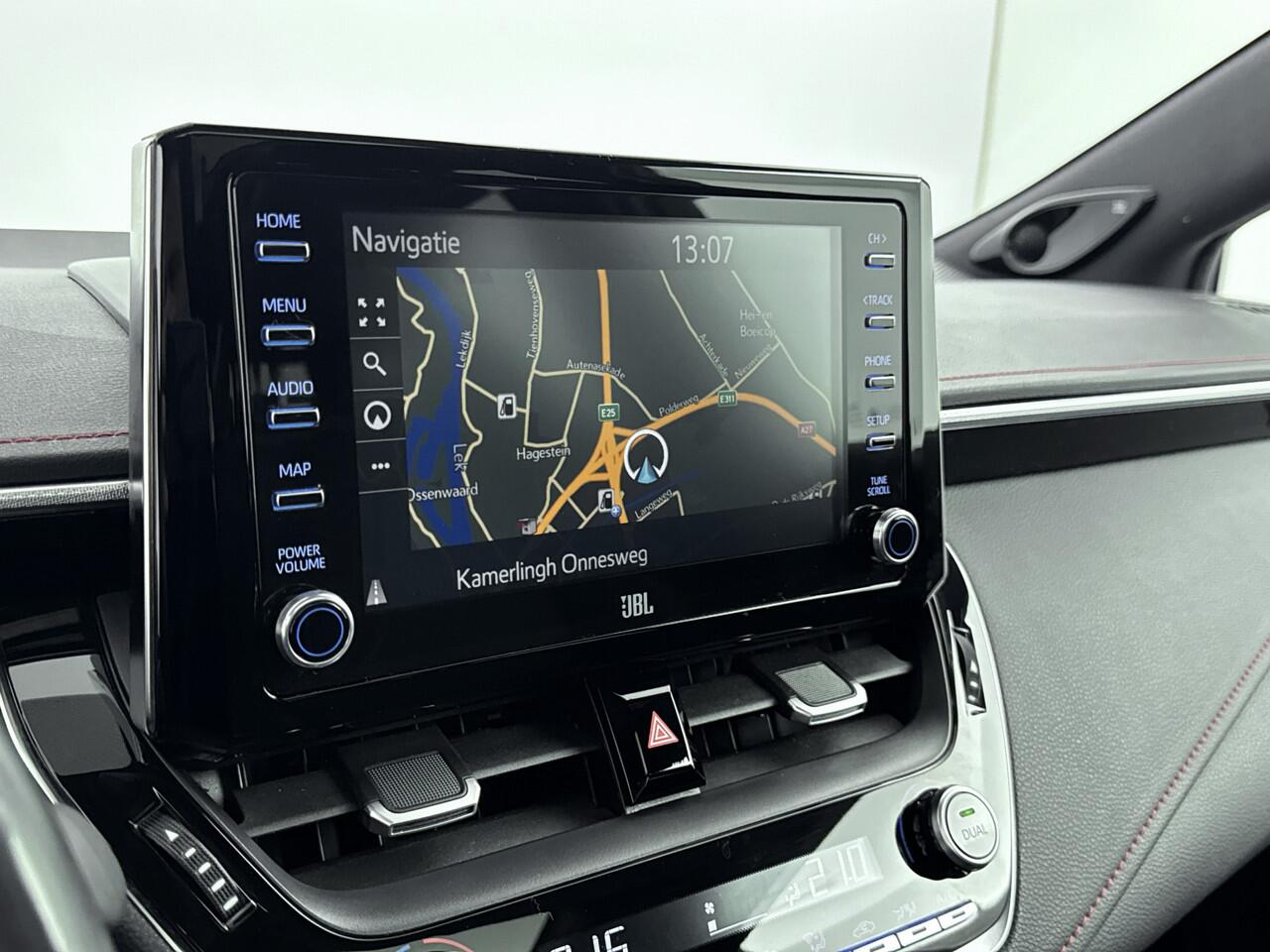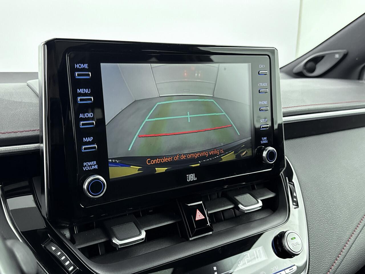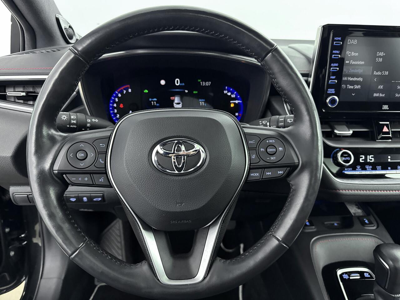 Zoals je mag verwachten van deze Toyota Corolla Touring Sports is hij uitgerust met een reeks aan actieve veiligheidssystemen. Bij de veiligheidssystemen van deze Toyota hoort ook de verkeersbord-detectie. Die leest tijdens het rijden als het ware met je mee en attendeert je op de significante verkeersborden langs en boven de weg. Een camera houdt de juiste koers binnen de rijstrook in de gaten en het Lane-keeping systeem corrigeert bij afwijkingen. Een fietser of ander voertuig in de dode hoek zie je gemakkelijk over het hoofd. De actieve dodehoekdetectie signaleert meteen elke risicosituatie. Bovenop deze veiligheidsfeatures heeft deze Toyota bovendien head-up display
