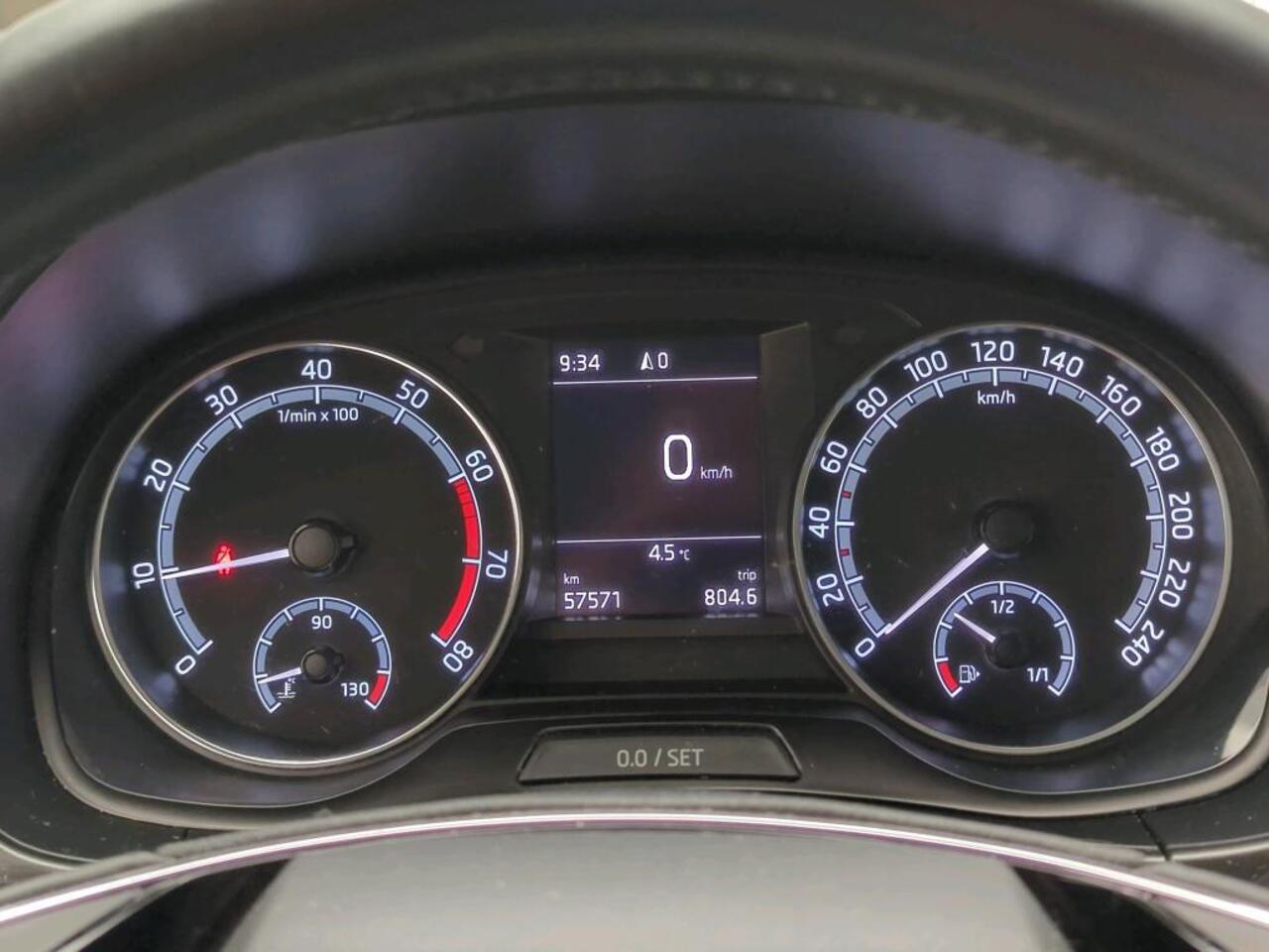 regelt de auto zelf de snelheid en de afstand tot de auto voor u. Het audio-installatiesysteem met DAB-ontvangst en het full map navigatiesysteem bedient u veilig met knoppen op het stuurwiel of met gesproken commando's. Dankzij automatische airconditioning is het interieur behaaglijk warm of verfrissend koel. Parkeersensoren helpen u tijdens het in- en uitparkeren. Het hoort bij een intelligente auto als deze dat hij zelf in staat is om zijn omgeving in de gaten te houden. Dat doet deze Skoda met een automatisch inschakelbare verlichting en een regensensor. En dan is deze auto ook nog eens voorzien van automatisch dimmende binnenspiegel