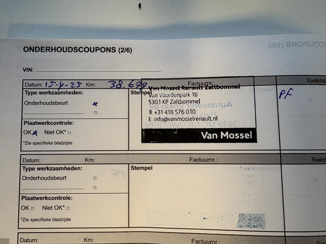 Onderhoudsboekjes: Aanwezig