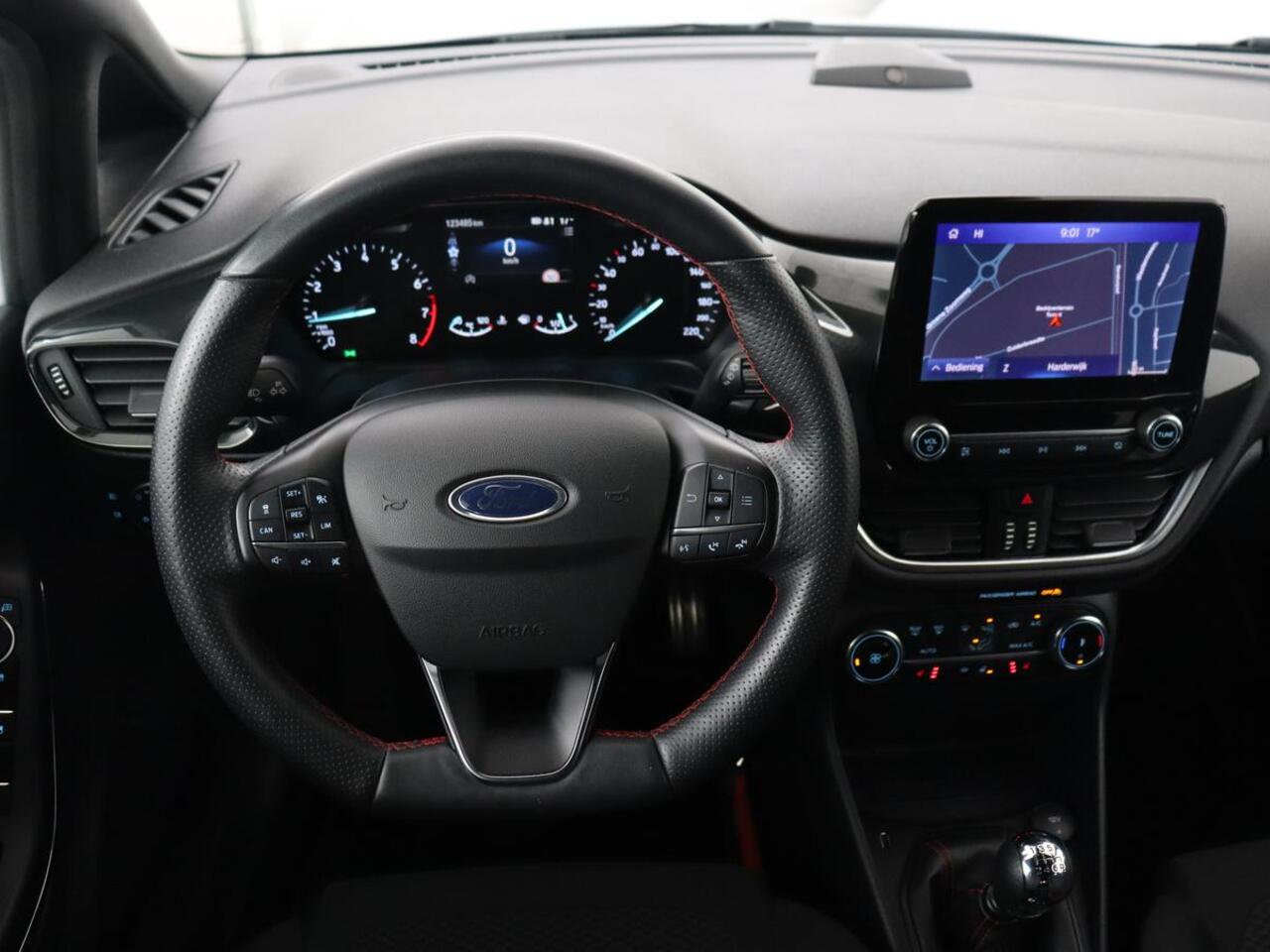 dan is deze Ford uw aandacht absoluut waard. In deze auto vindt u een benzinemotor en een handgeschakelde zesversnellingsbak. Bestuurder en bijrijder krijgen een warm welkom: deze Ford Fiesta is voorzien van verwarmbare voorstoelen. Laat die bochten maar komen! In de sportstoelen zitten u en uw bijrijder altijd goed! Geen gekleum meer in de koude dagen. Het verwarmd stuurwiel voelt als een weldaad na het ijskrabben. Tot de voorzieningen van deze auto behoren 17 inch lichtmetalen velgen